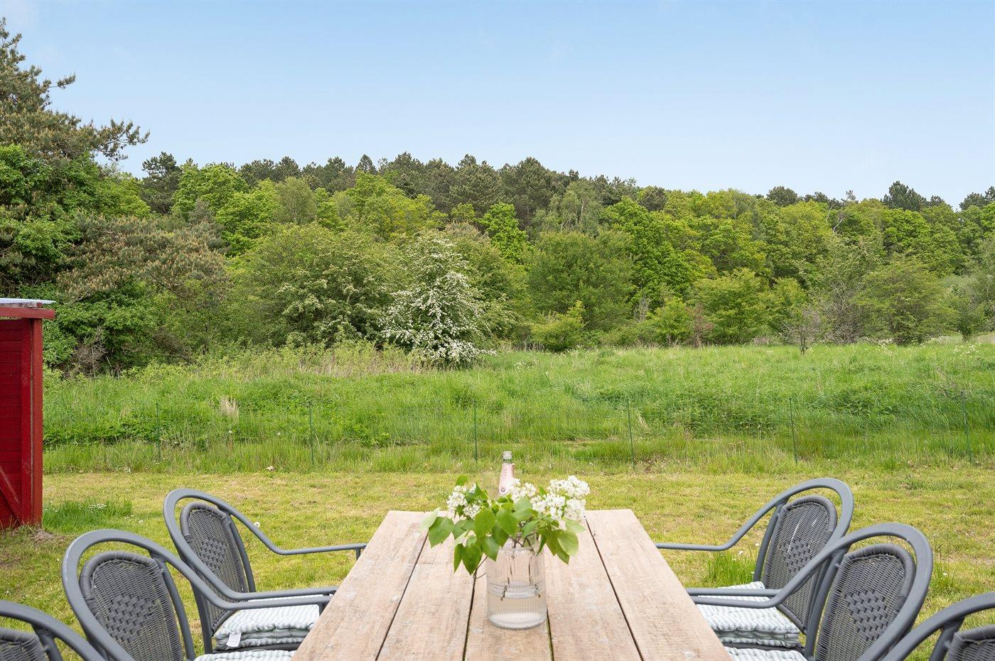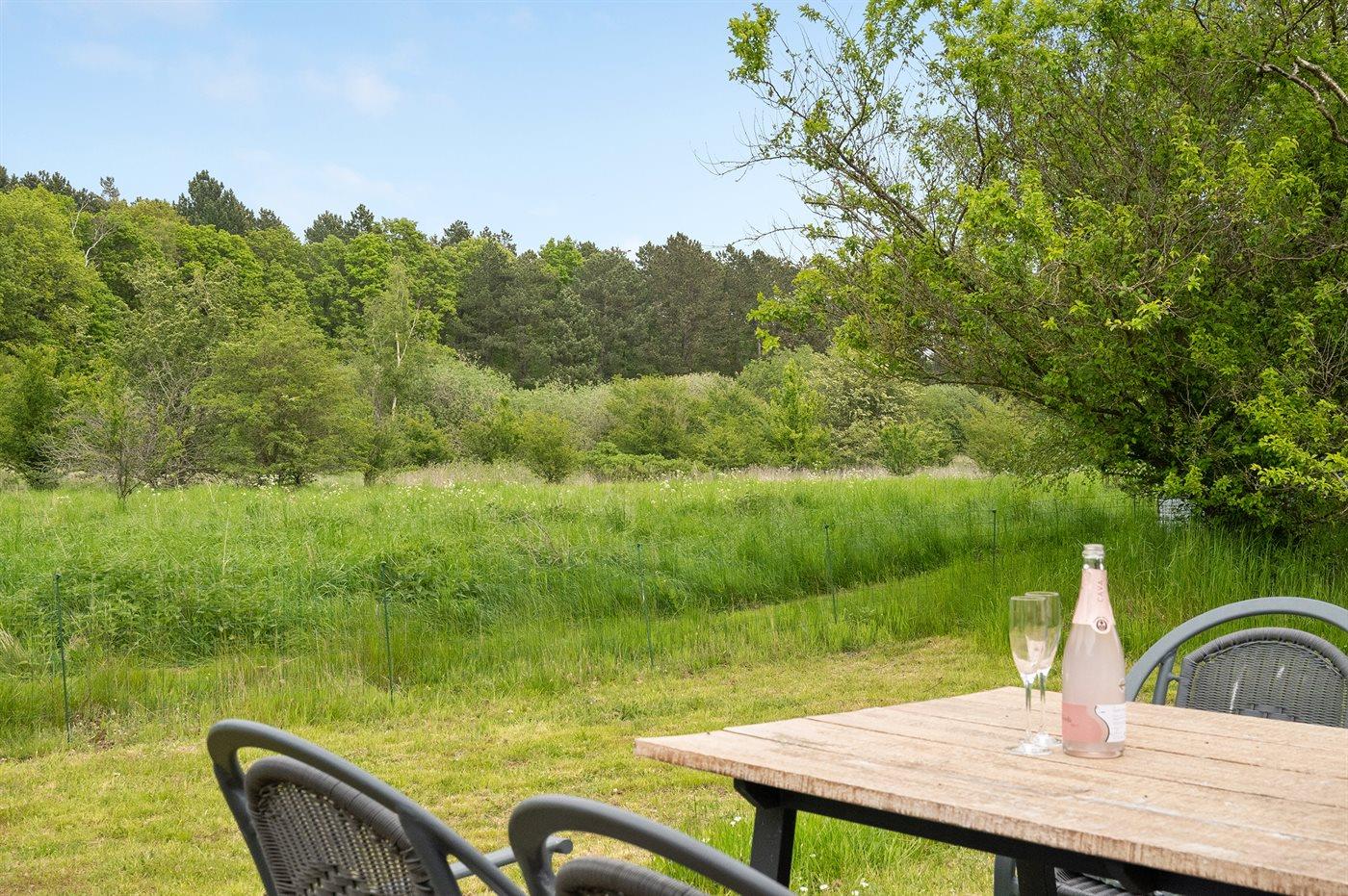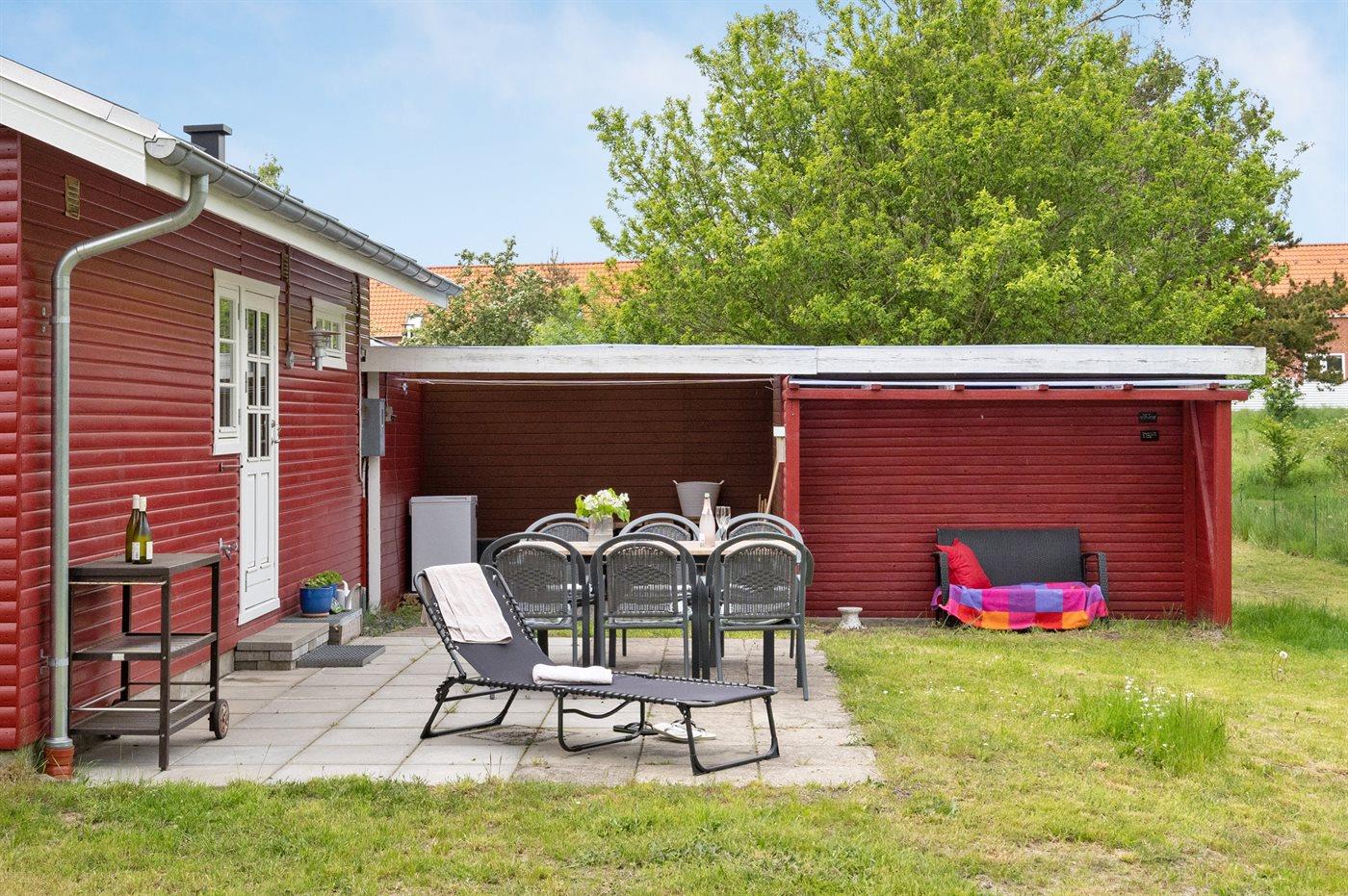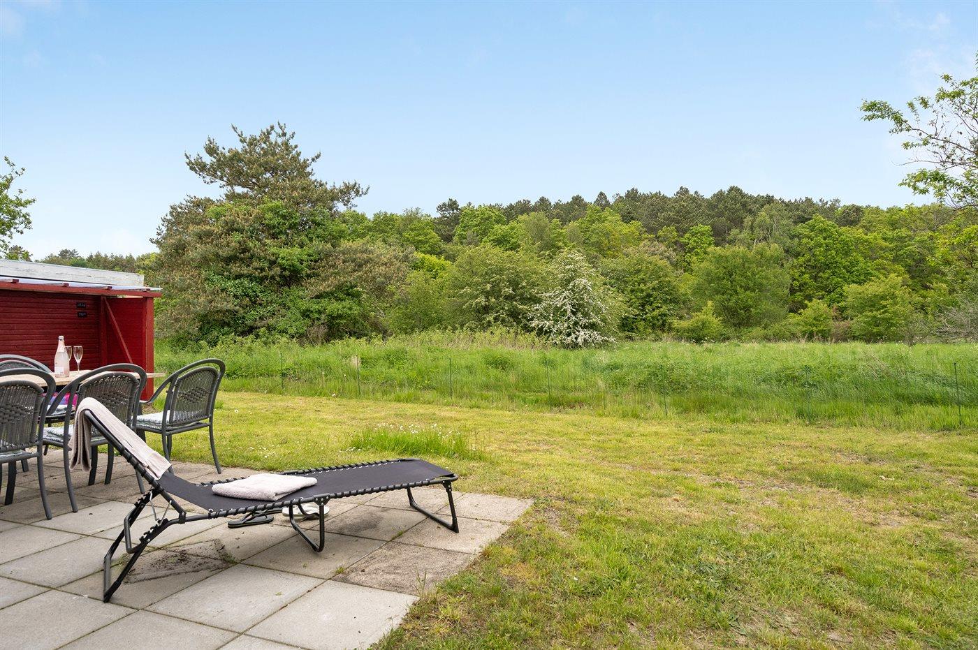 Ferieboligen er beliggende på en 1200 m² stor naturgrund. Der er 480 m til havet. Der er en sø i en afstand af 620 m. Nærmeste forretning er beliggende i en afstand af 1500 m. Der er en golfbane i en afstand af 2700 m. Til ferieboligen hører 46 m² terrasseareal. Desuden er der overdækket terrasse. Sandkasse. Shelter. Grill til rådighed. Parkering ved ferieboligen.