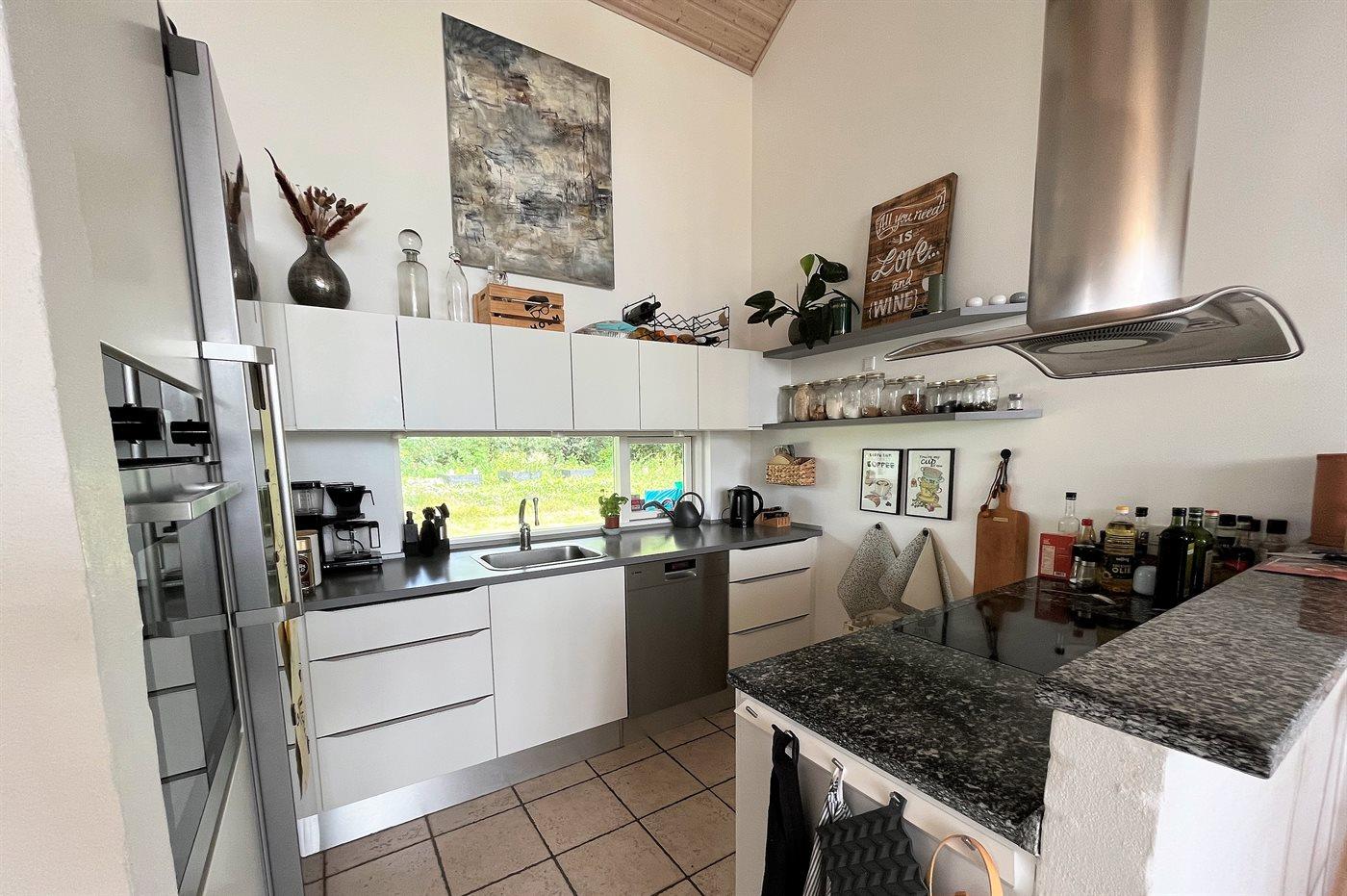 Køkkenet er udstyret med 1 køleskab. Der er 4 induktionskogeplader, varmluftovn, mikrobølgeovn samt opvaskemaskine.