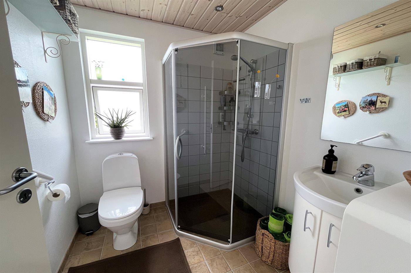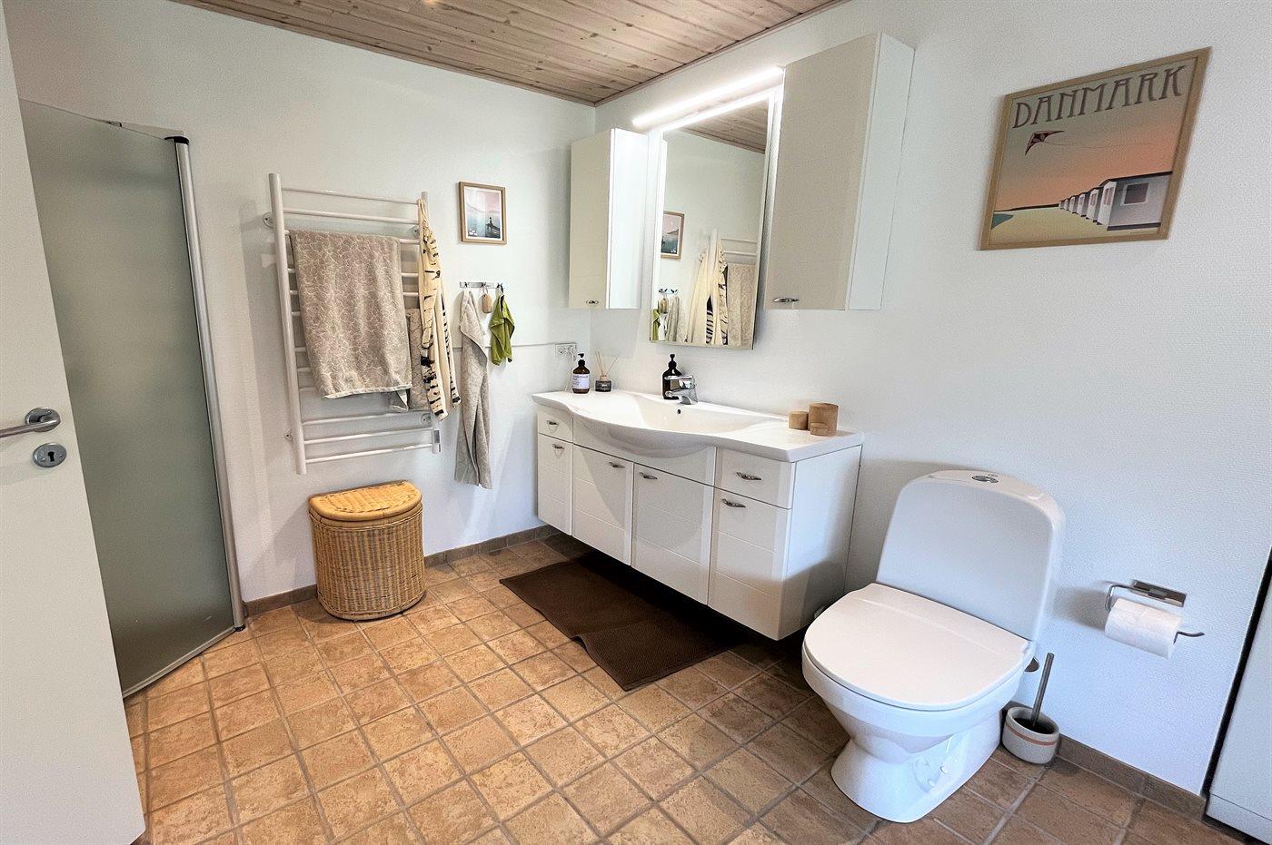 Der er 2 badeværelser med bruseniche og 2 toiletter. Der er gulvvarme på 2 badeværelser. I saunaen er der mulighed for afslapning.