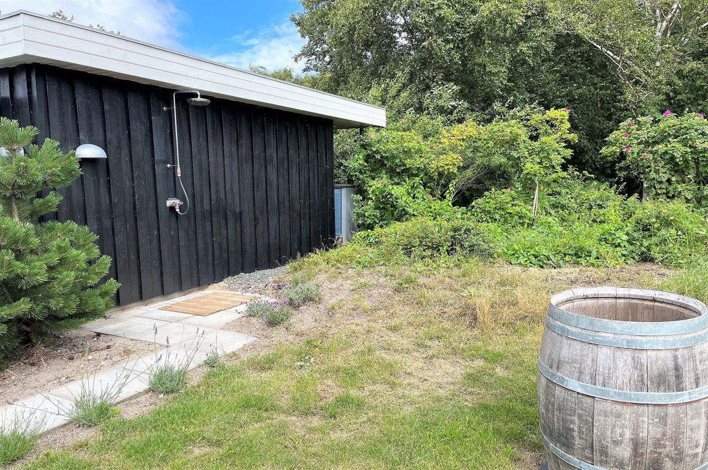Ferieboligen er beliggende på en 1350 m² stor havegrund. Der er 350 m til havet. Nærmeste forretning er beliggende i en afstand af 1500 m. Til ferieboligen hører åbent terrasseareal. Desuden er der overdækket terrasse. Gynge. Sandkasse. Udendørs bruser. Grill til rådighed. Parkering ved ferieboligen.
