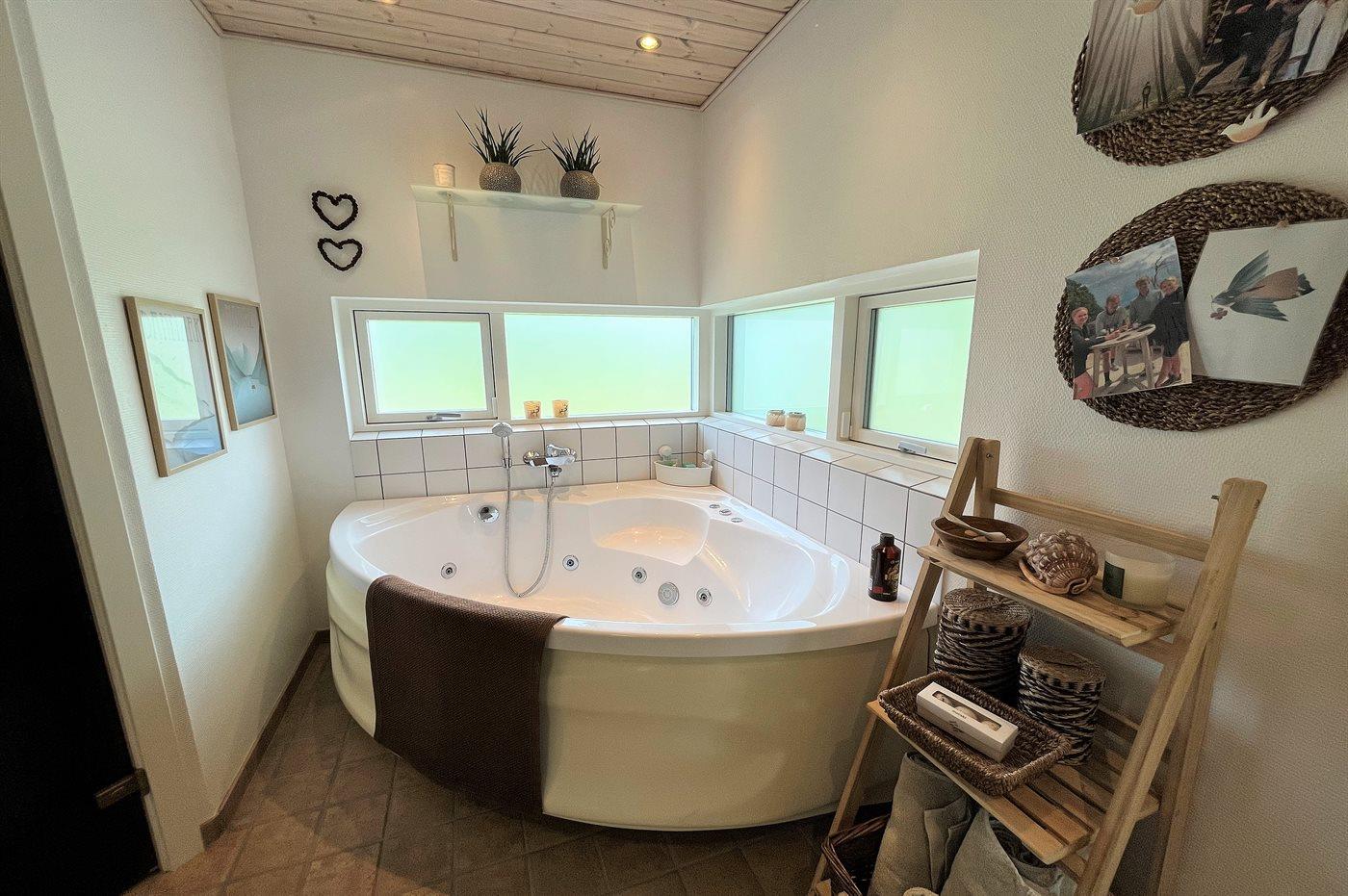 Skønt sommerhus tæt på vandet med aktivitetsrum, spa og dejlig have i attraktivt ferieområde.