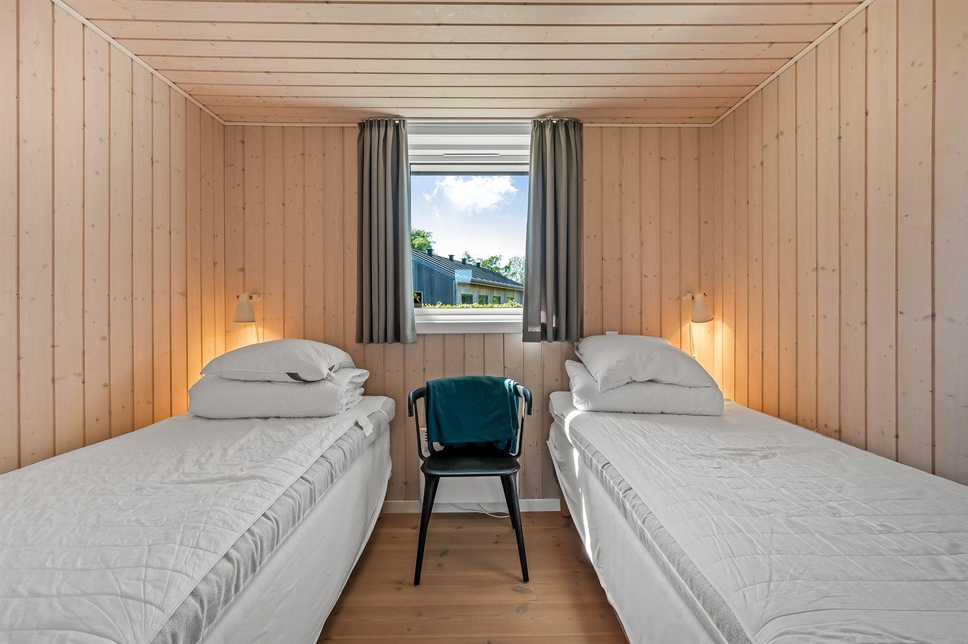 Der er i alt 3 soveværelser. Sovepladserne fordeler sig på: 4 sovepladser i dobbeltsenge. 2 sovepladser i enkeltsenge.
