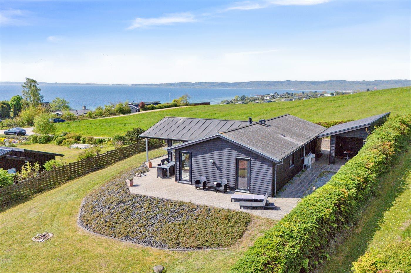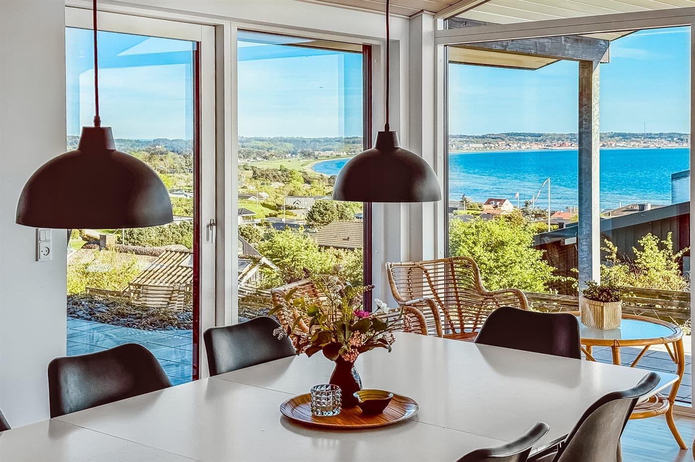 Højt, velbeliggende sommerhus med panoramaudsigt over havet og Ebeltoft by, hvor bl.a. Fregatten Jylland kan ses. Huset ligger på en skrånende grund, for enden af en lukket vej, der støder op til et stort grønt friareal med en fantastisk udsigtspost. I nærheden ligger skøn badestrand, som er meget børnevenlig og med badebro, og hvorfra der kan fanges krabber. Stranden er ligeledes velegnet til kitesurfing og windsurfing.