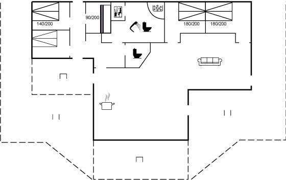 Der er i alt 5 soveværelser. Sovepladserne fordeler sig på: 8 sovepladser i dobbeltsenge. 2 sovepladser i køjeseng. Derudover er der 1 stk. barneseng.