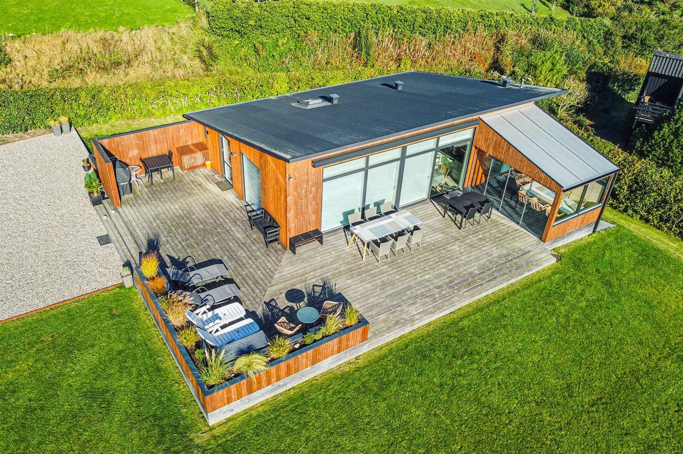 Moderne sommerhus med havudsigt og aktivitetsrum