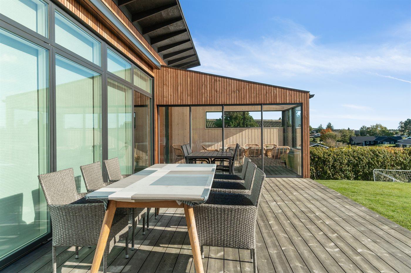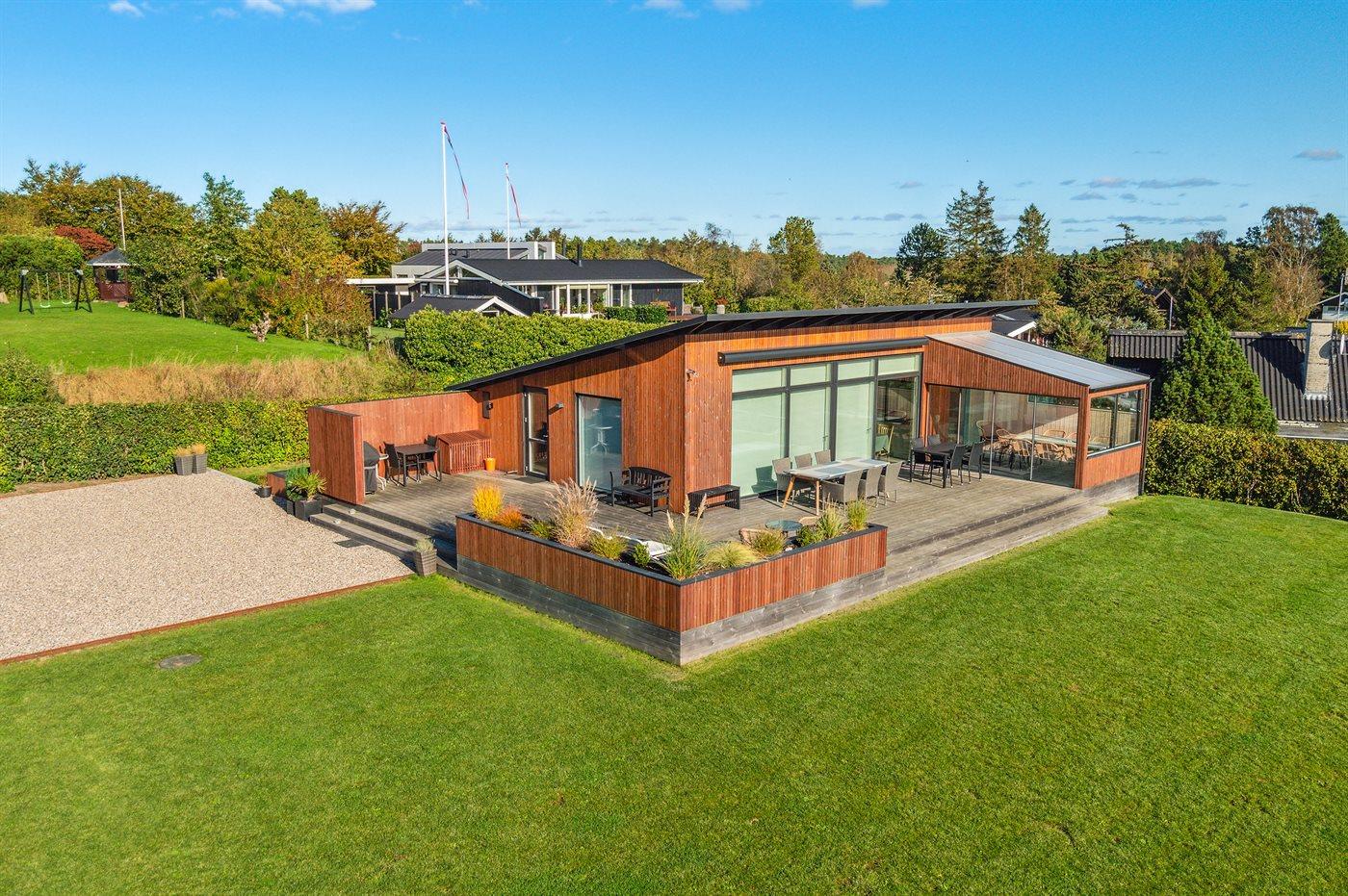 Moderne sommerhus fra 2021 med havudsigt, stor terrasse og aktivitetsrum tæt på vandet i Ebeltoft.