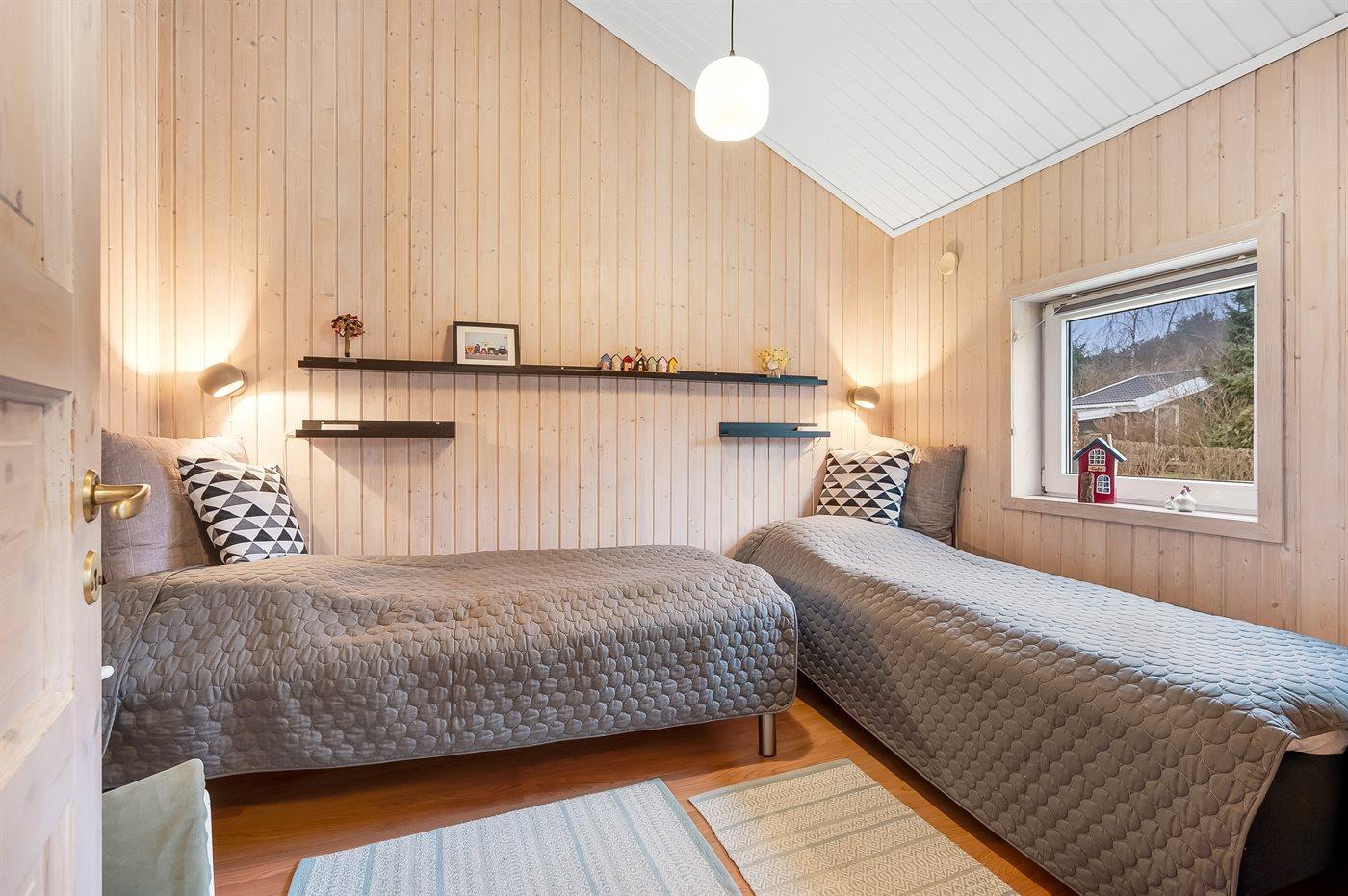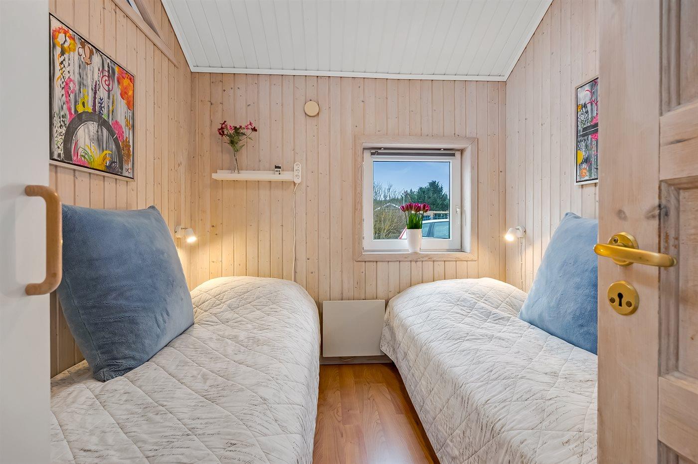 Desuden rummer huset 3 soveværelser med gode senge, nye dyner/puder, god skabsplads, 1 med dobbeltseng, og 2 med hver 2 enkeltsenge. Sluttelig er stort badeværelse med gulvvarme, bruseniche, vaskemaskine og tørretumbler.