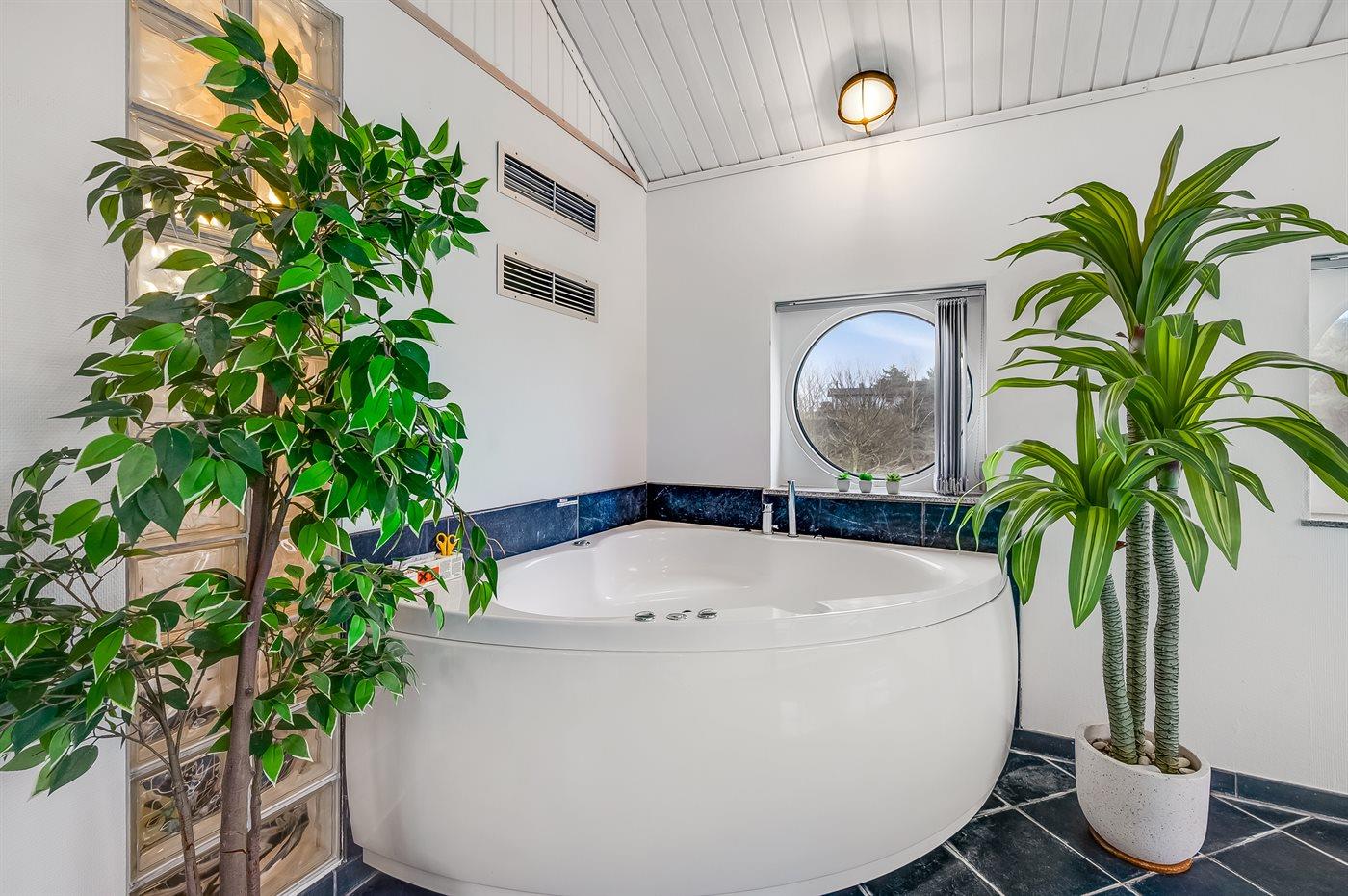 Inde i huset finder I den attraktive pool-afdeling der har opvarmet klinkegulv, og skøn stor velrenoveret swimmingpool med en vandtemperatur på 29-30 grader. En rigtig god 2-personers spa med massagedyser. bruseniche og badeværelse med toilet/håndvask findes også her. DER ER MONTERET VARMEPUMPE FOR AT MINIMERE STRØMFORBRUGET I POOL-AFDELINGEN.