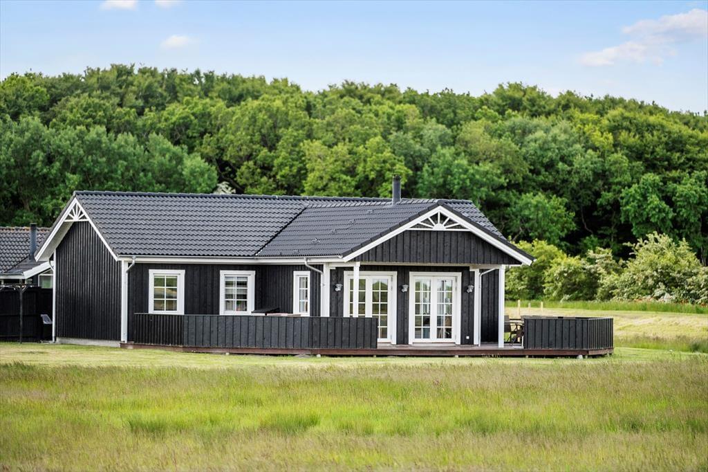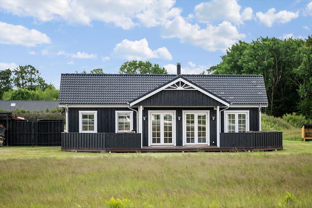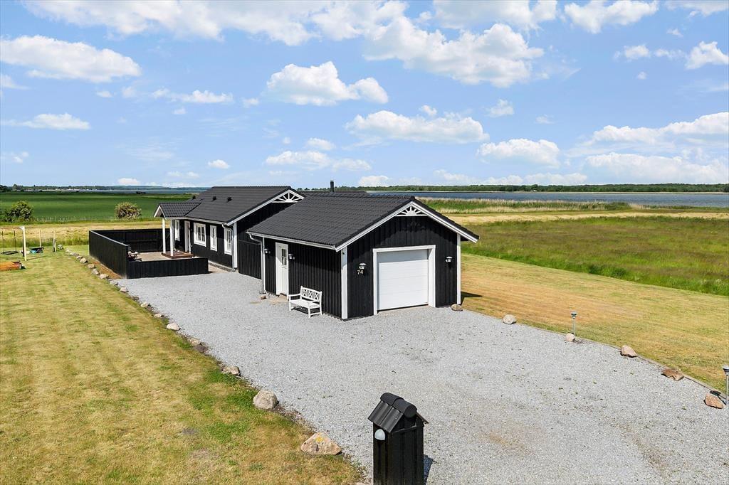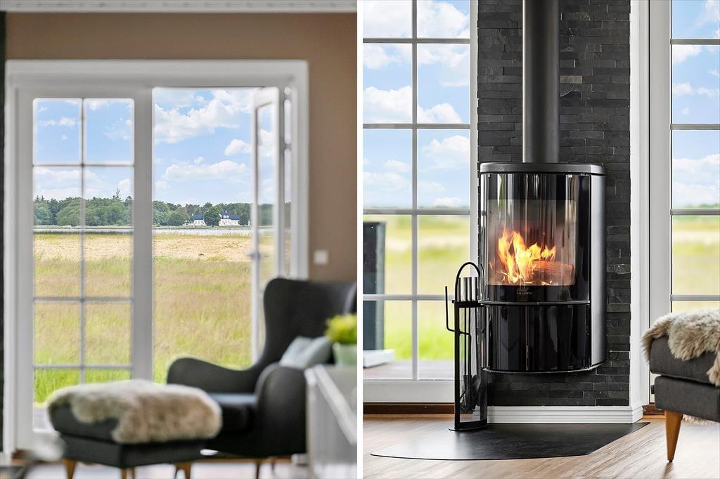 Huset fremstår meget lyst og romantisk. Her er simpelthen tænkt på det hele. Huset byder på tre soveværelser, hvor to af dem er med en trekvart seng, et med køjesenge og på det sidste værelse er der dobbeltseng. Der er to badeværelser, det ene med toilet og spa samt bruser, det fremstår i smuk skandinavisk stil; elegant og samtidig enkelt, og her oser af wellness. Det andet badeværelse har brusekabine og toilet. Stilener gennemgående smuk og skandinavisk i huset og huset byder på en afslappende stemning i stuen, hvor der er rigeligt plads til alle. Man kan have skønne hyggeaftener foran brændeovnen, eller hygge med en god film i det hyggelige sofahjørne Eller bare sidde og nyde den smukke udsigt over vandet. Det åbne køkken er en integreret del af stuen og det bliver nemt samlingspunktet for familien. Fra køkkenet er der udgang til en terrasse der løber hele vejen omkring huset og her kan man nyde udsigten over den store grund. Dette er et hus, hvor du med garanti vil føle dig godt tilpas fra første øjeblik.