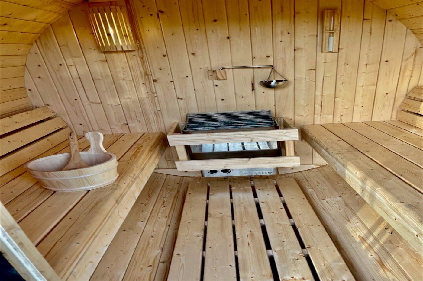 Der er mulighed for afslapning i det udendørs vildmarkskar til 6 personer.