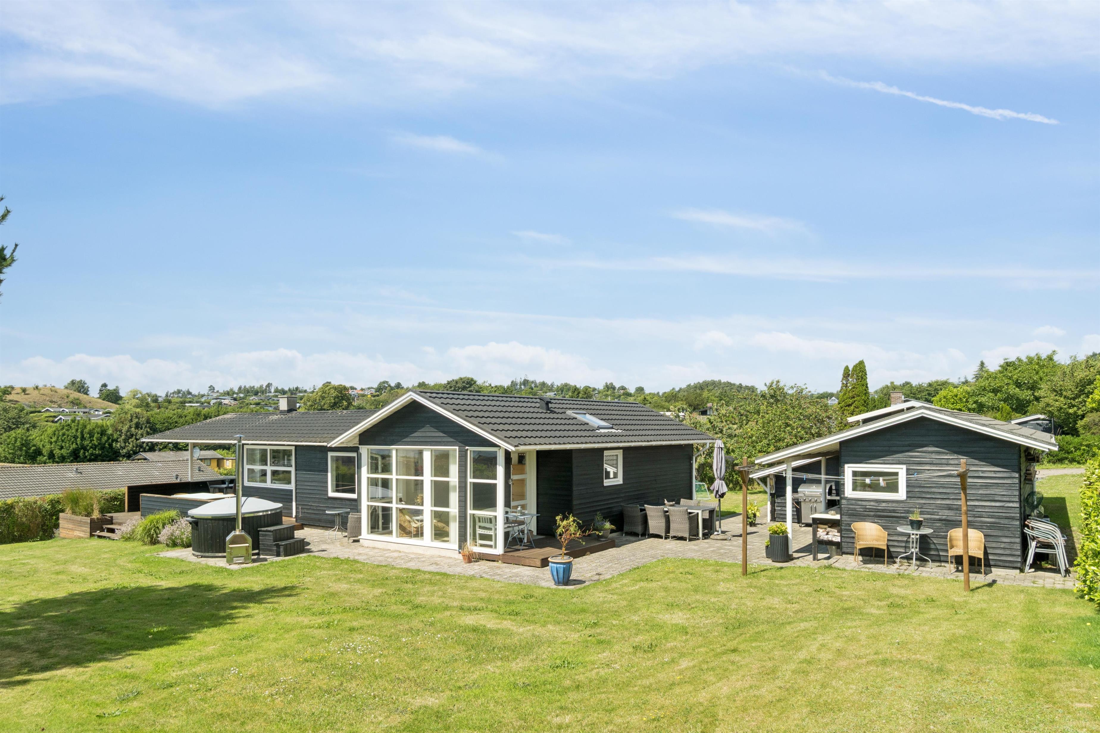 Moderne sommerhus ved Ebeltoft Vig med vildmarksbad, bålplads og fiskerenseplads – perfekt til afslapning og naturoplevelser.