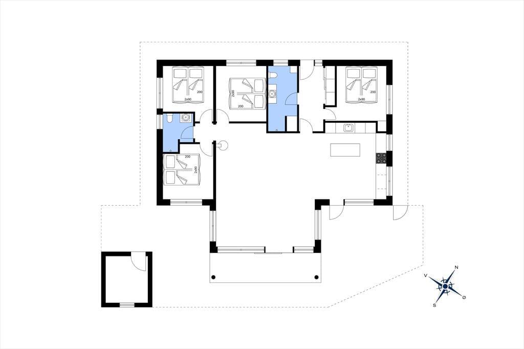 Med fire rummelige soveværelser er der plads til hele familien. Et værelse har en dobbeltseng, mens de tre øvrige har to enkeltsenge hver. Derudover er der en hyggelig hems, som er perfekt til børnene. Huset har to badeværelser med gulvvarme og brusenicher, så komforten er i top. Hele huset opvarmes med energieffektiv luft-til-vand gulvvarme. Den indhegnede grund giver mulighed for, at både små børn og hunde kan lege trygt i haven.