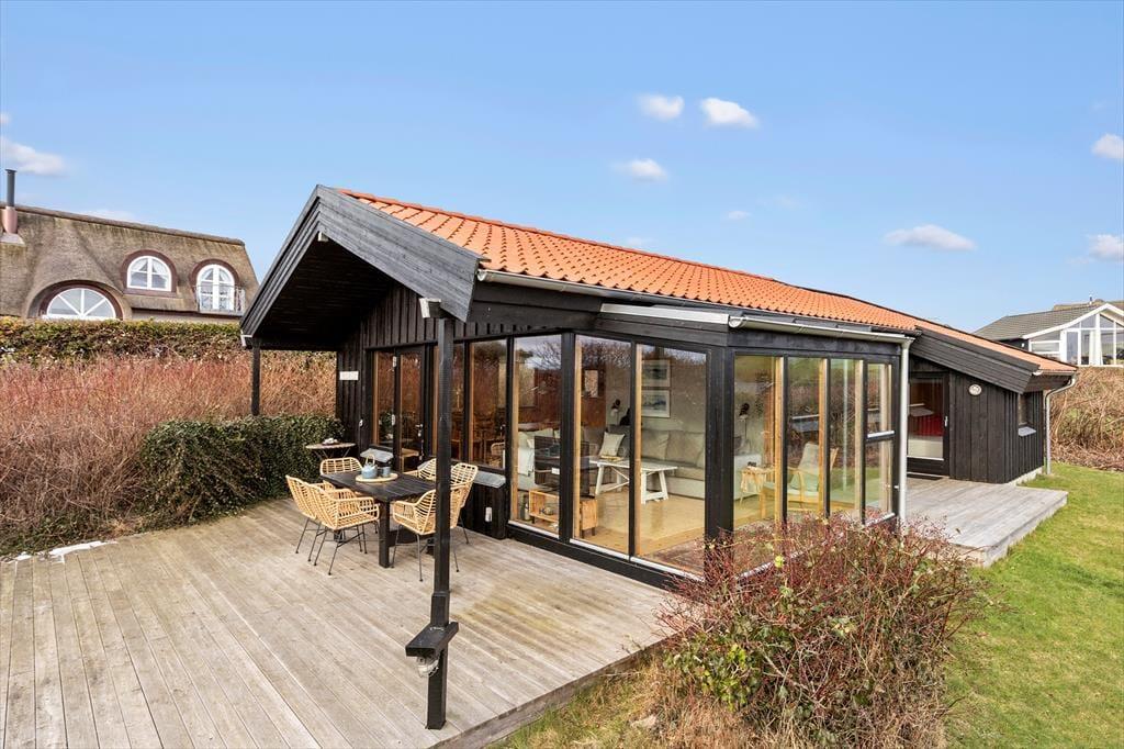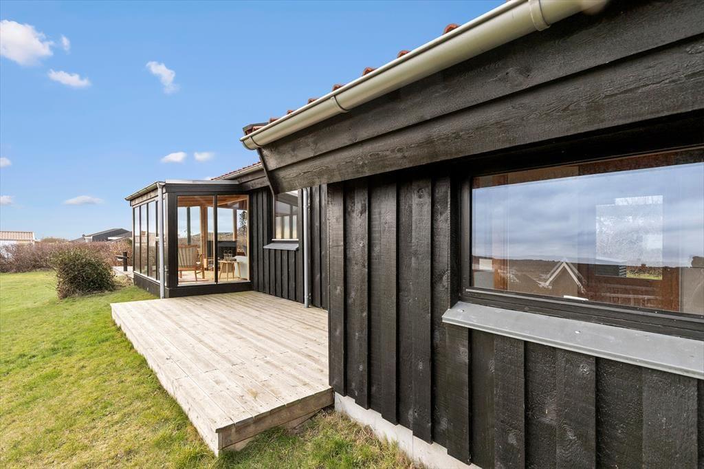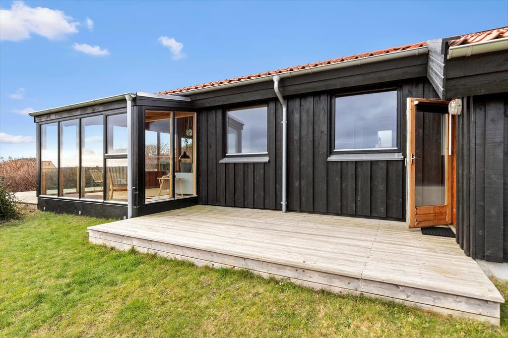 Udenfor venter den store, solrige grund med panoramaudsigt og masser af plads til leg, afslapning og udendørs hygge. Her kan du nyde solen på terrassen med morgenkaffen, grille til de lange sommeraftener og lade børnene lege frit rundt i haven. Sommerhuset ligger kun ca. 200 m fra stranden, så det er let at tage en dukkert i havet, mærke sandet mellem tæerne og mærke saltluften på huden – også flere gange om dagen, hvis du vil! Der er desuden gode muligheder for at lade hunden løbe frit og nyde naturen sammen med dig.