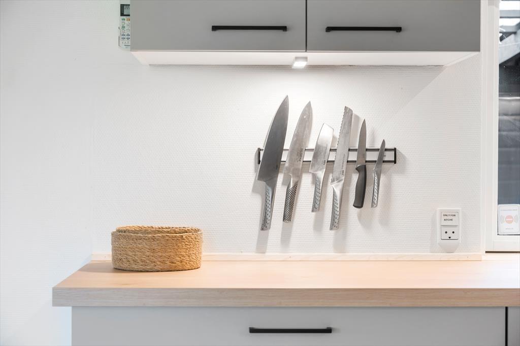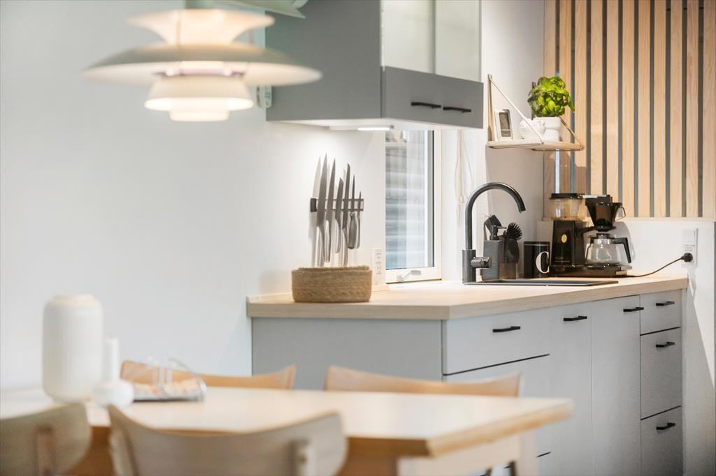 Indendørs: Velholdt hus med god indretning. Komb. opholds-/spisestue med adgang til stor udestue, hvorfra der er udgang til hyggelig have. Åbent køkken med køleskab,fryser , komfur med ovn, opvaskemaskine. 2 soveværelser, 1 med 1 dobbeltseng, 1 med 1½ køjeseng. Badeværelse med bruseniche, håndvask, toilet. Radiator på badeværelse. Vaskemaskine og tørretumbler i udhus.