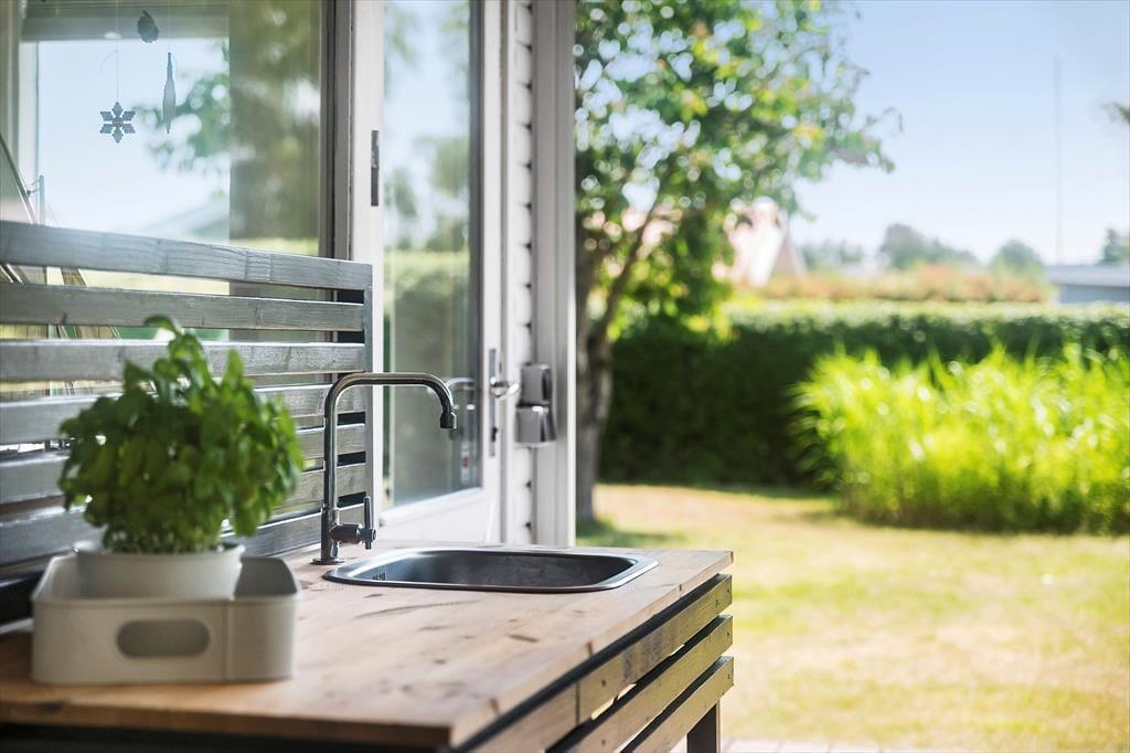 Charmerende og velholdt feriehus med stor udestue og solrig have nær Karrebæksminde strand.