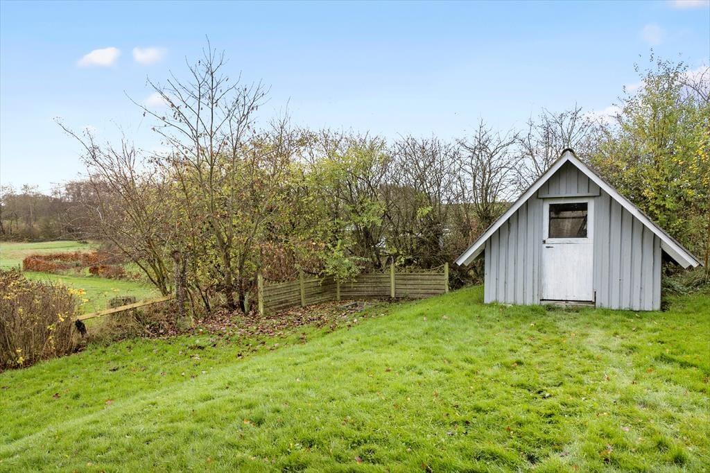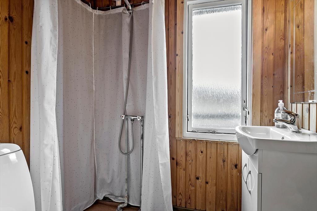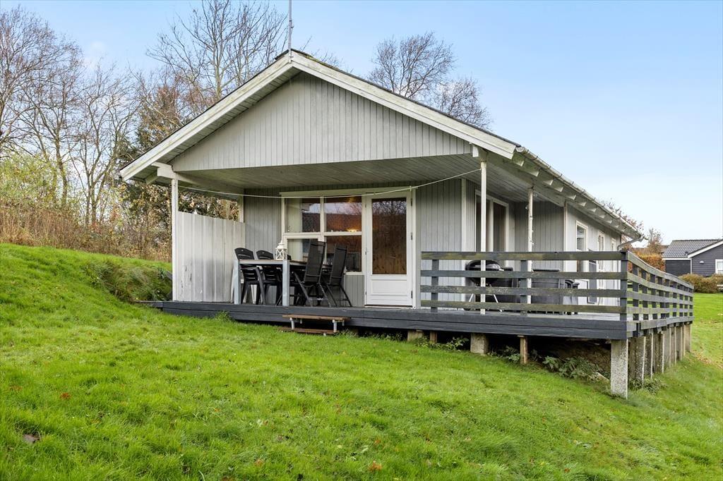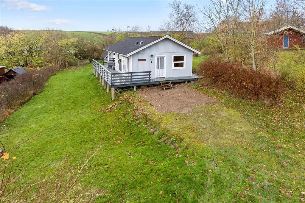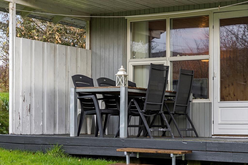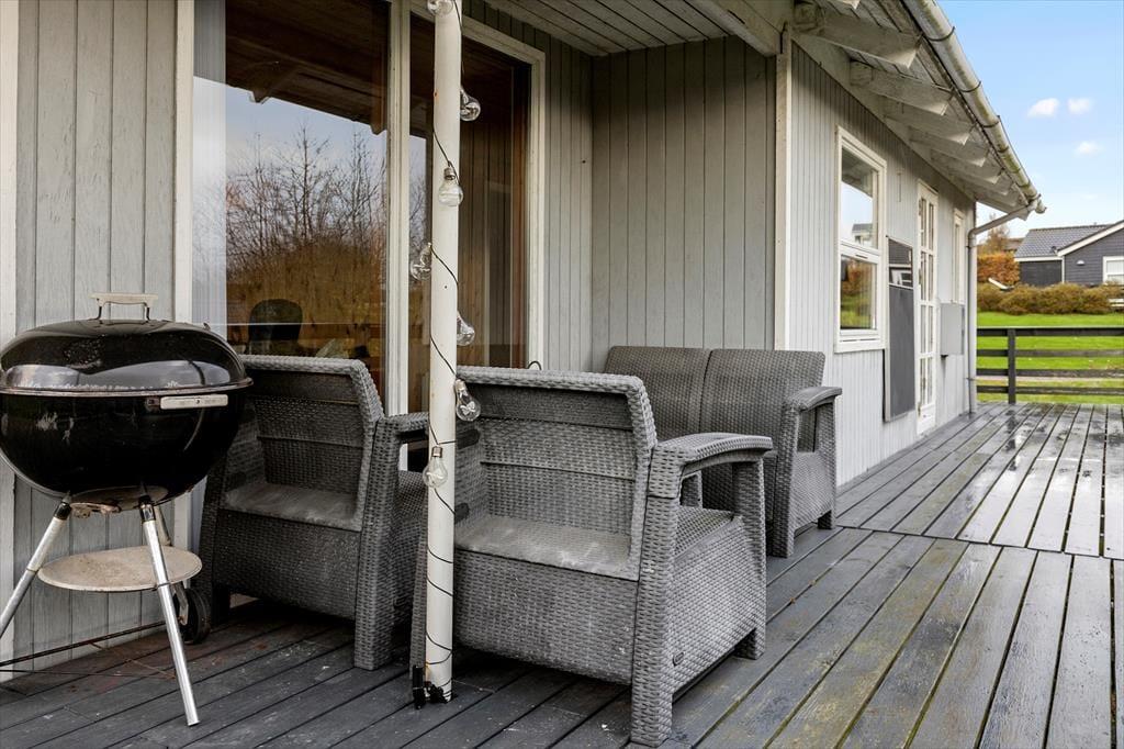 Udenfor sommerhuset venter en dejlig terrasse, der går næsten hele vejen rundt om huset. Her kan I finde et solrigt hjørne om morgenen til en kop kaffe eller søge skygge under parasollen om eftermiddagen. Den store udendørsplads indbyder til afslapning og leg – enten i solen eller i skyggen af træerne. Der er rig mulighed for at grille og nyde måltiderne under åben himmel, og på de lange sommeraftener er terrassen det perfekte sted til at slappe af med en god bog eller spille brætspil med familien. Med kun 500 meter til stranden kan I hurtigt tage en dukkert eller gå en tur langs vandet og mærke sandet mellem tæerne.