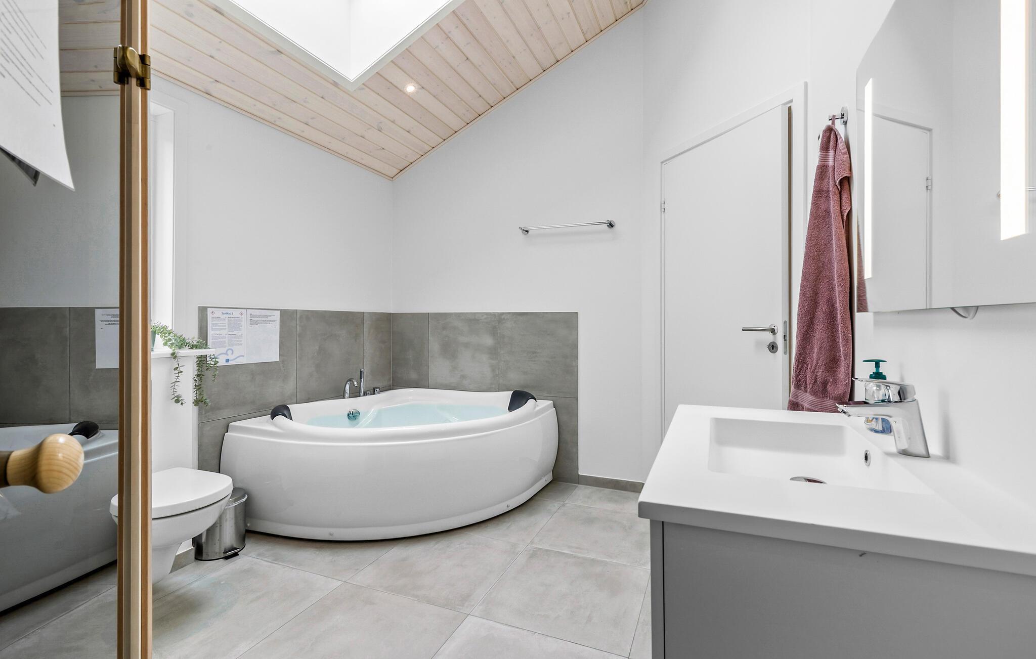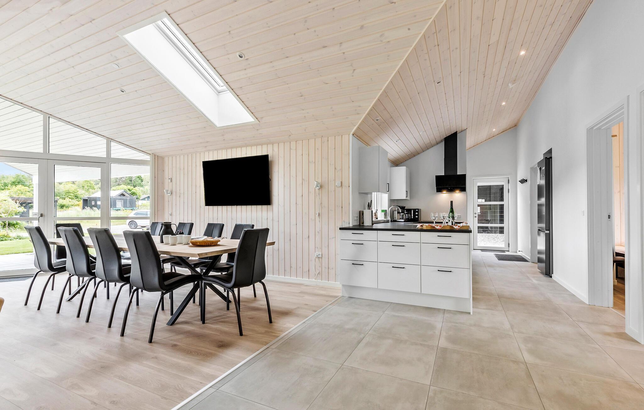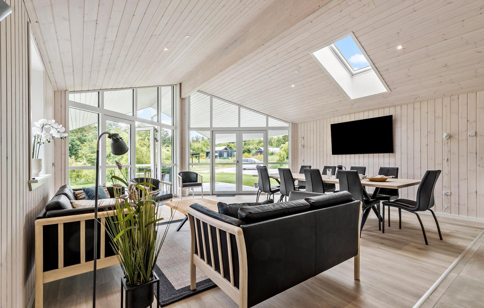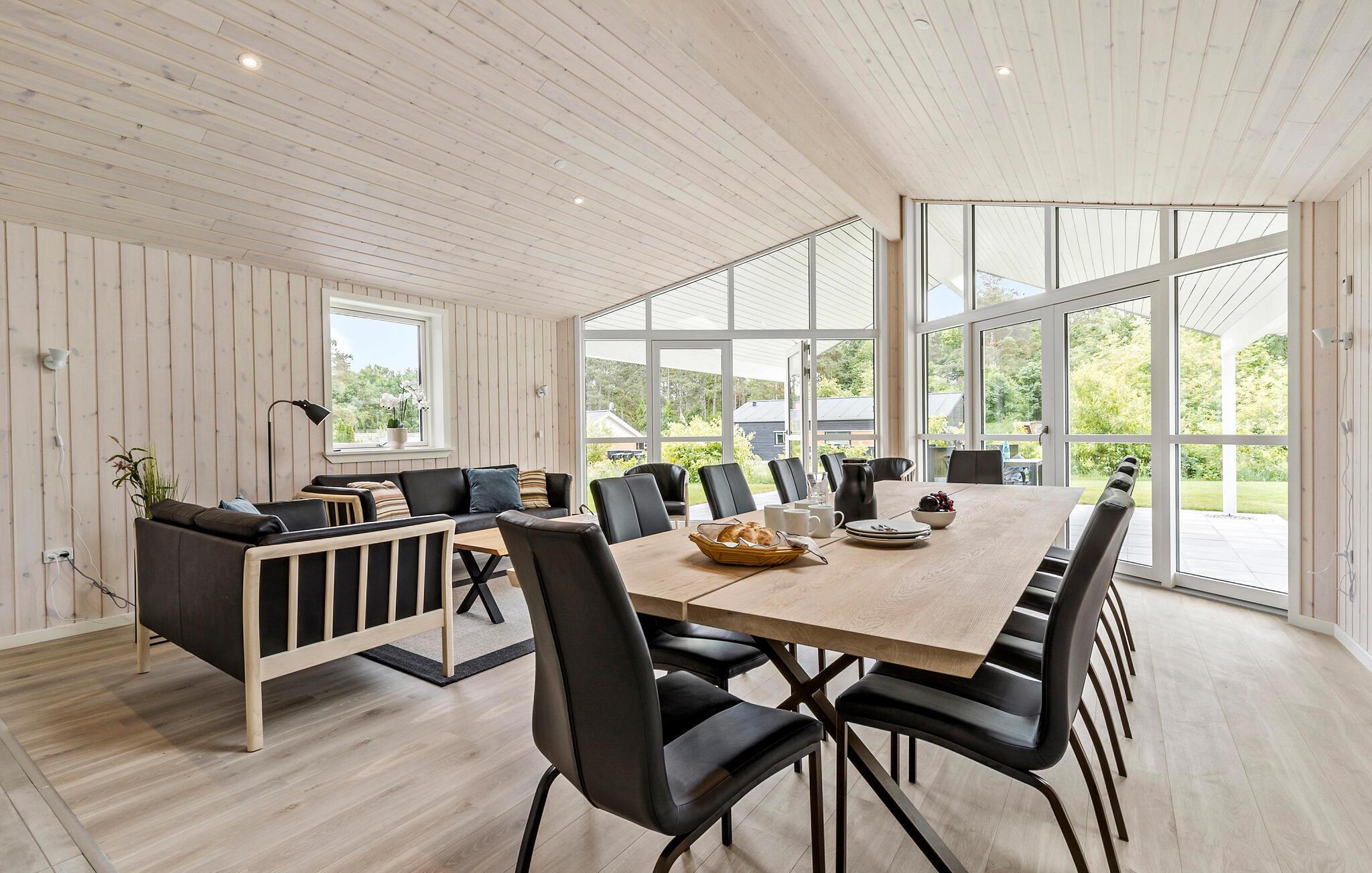 Dette eksklusive feriehus med indendørs spabad og sauna ligger idyllisk i smukke naturomgivelser i Fuglslev. Dette flot designede hus byder på en lys og luftig atmosfære med elegant minimalisme. Nyd den smukke udsigt til naturen gennem den store vinduesfacade, som henter den smukke solnedgang helt ind i stuen. Har I brug for endnu mere afslapning, kan I nyde et glas vin i boblebadet indenfor efterfulgt af en tur i saunaen. Den ugenerte have er et godt legested for børn, og på terrasserne finder I både sol, skygge og læ i løbet af dagen.