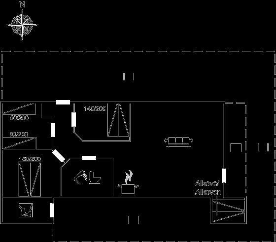 Der er i alt 3 soveværelser. Sovepladserne fordeler sig på: 4 sovepladser i dobbeltsenge. 2 sovepladser i enkeltsenge. 2 sovepladser i alkove. Derudover er der 1 stk. barneseng.
