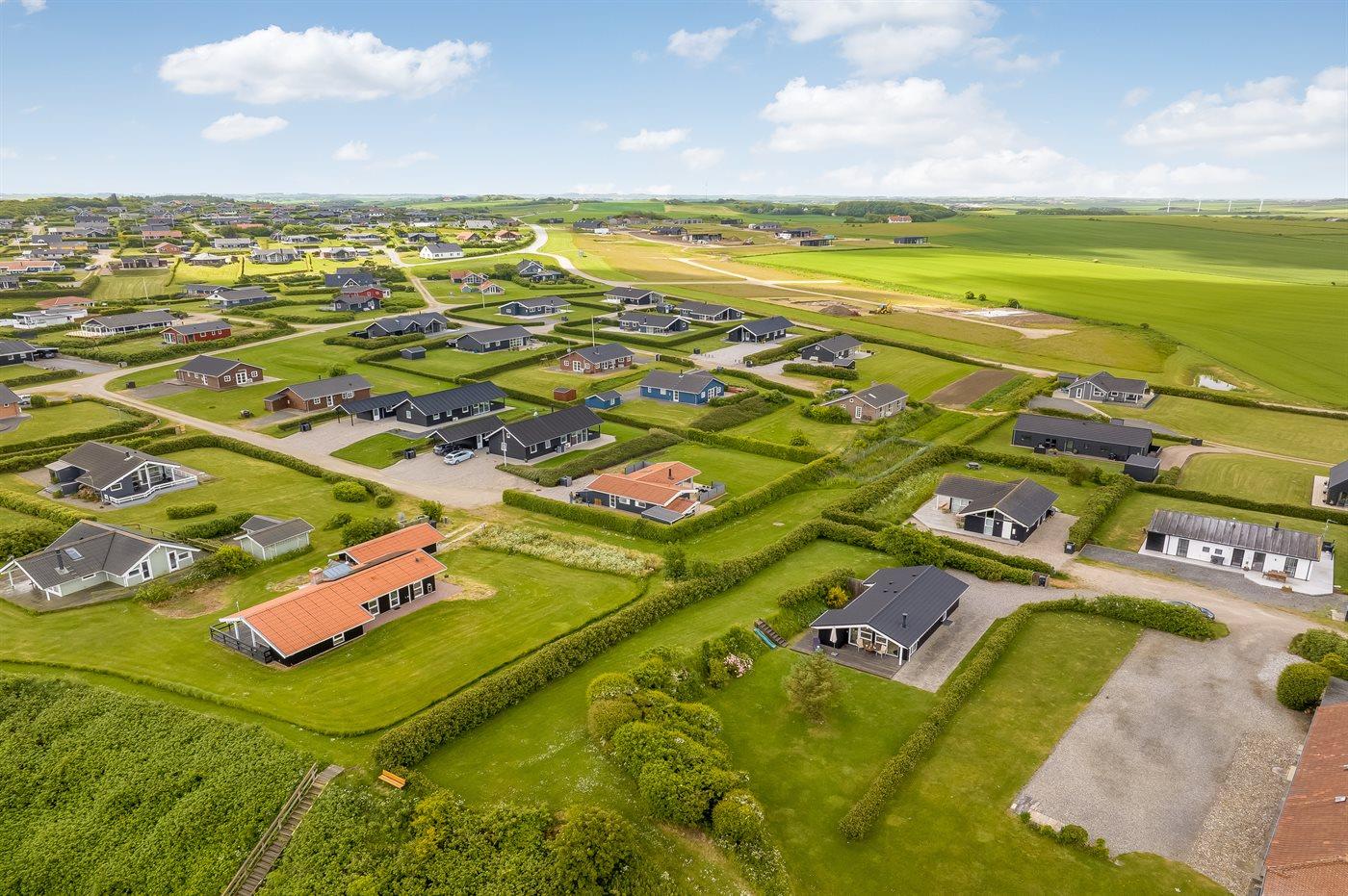 Ferieboligen er beliggende på en 1355 m² stor naturgrund. Der er 8500 m til havet. Der er 330 m til fjorden. Nærmeste forretning er beliggende i en afstand af 1500 m. Til ferieboligen hører 90 m² terrasseareal. Desuden er der 8 m² overdækket terrasse. Der er redskabsrum. Rutchebane. Grill til rådighed. Parkering ved ferieboligen.