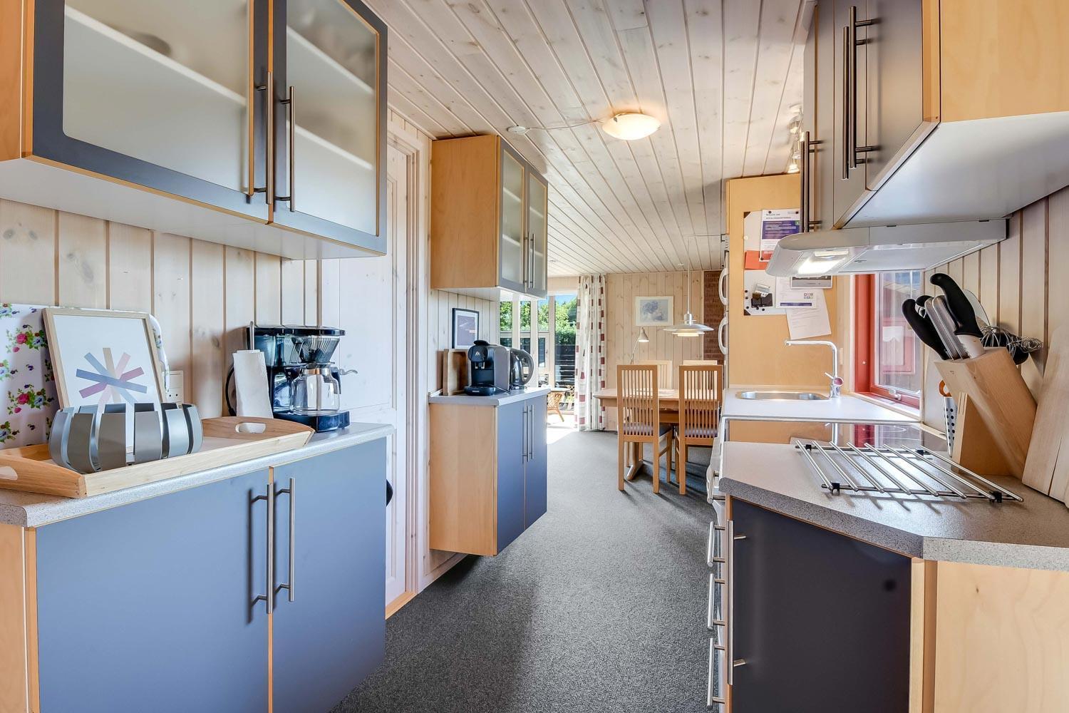 Køkkenet har glaskeramisk komfur, opvaskemaskine, køleskab og en separat fryser på 20 liter.