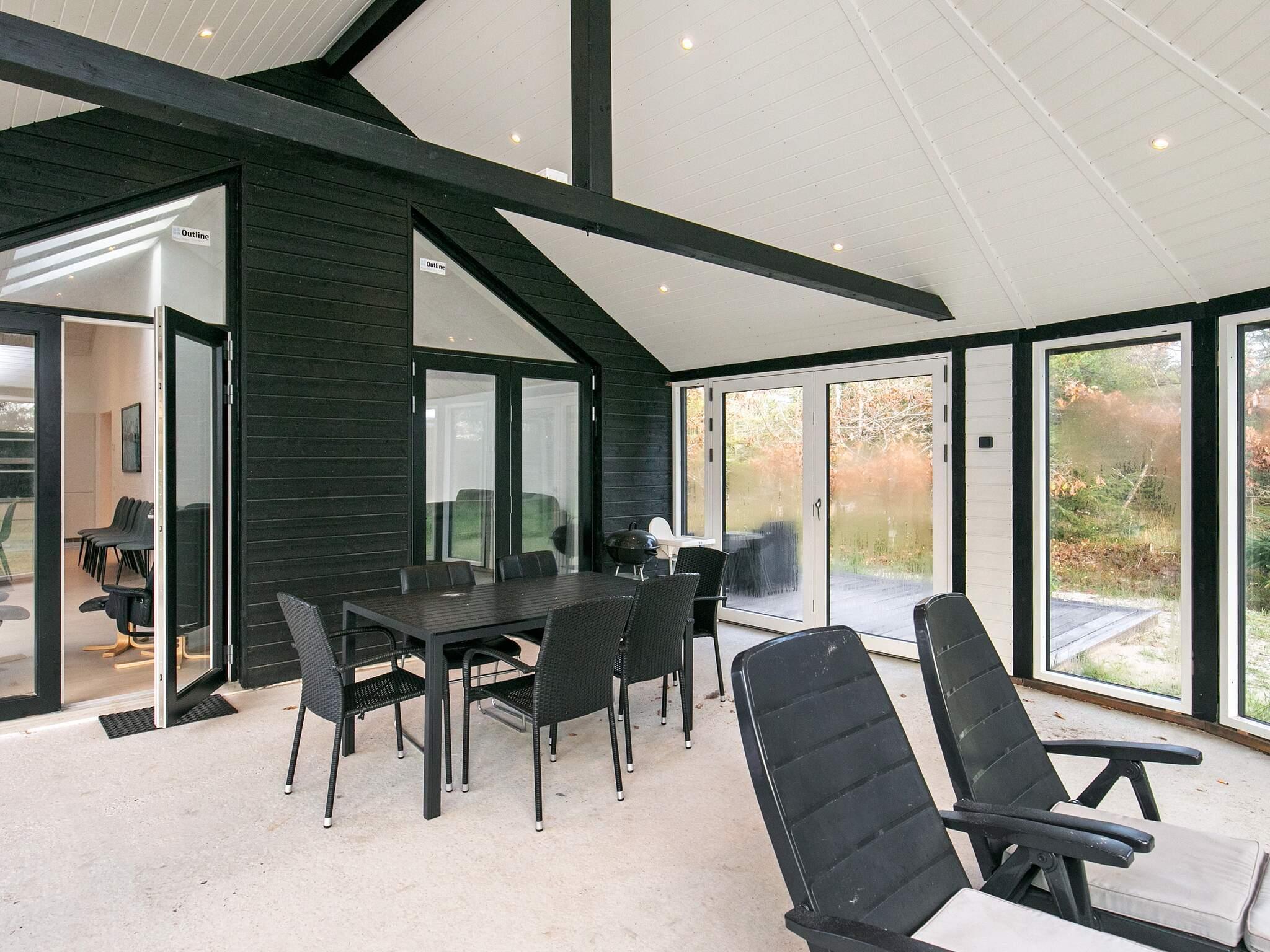 Rundt om huset findes flere store terrasser, hvor der findes såvel sol som skygge og masser af muligheder for læ. Sommerhuset har også en stor overdækket terrasse, som stort set virker som en ekstra forlængelse af stuen. For de mindste findes der også både gynge samt sandkasse. Huset er placeret på en stor naturgrund på 2700 m2. Udlejes ikke til ungdomsgrupper.