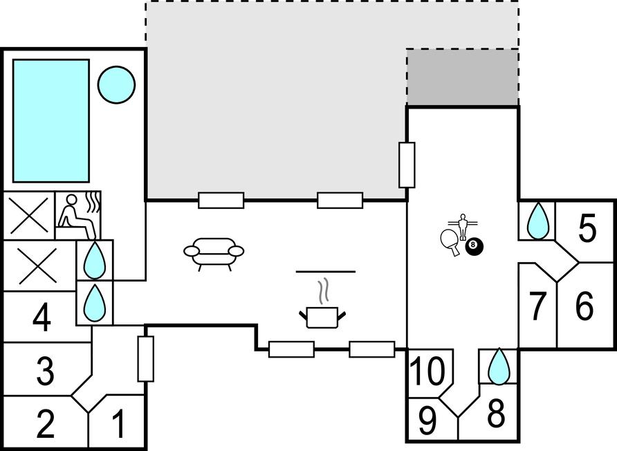 Rummeligt poolhus med sauna og børnevenligt område