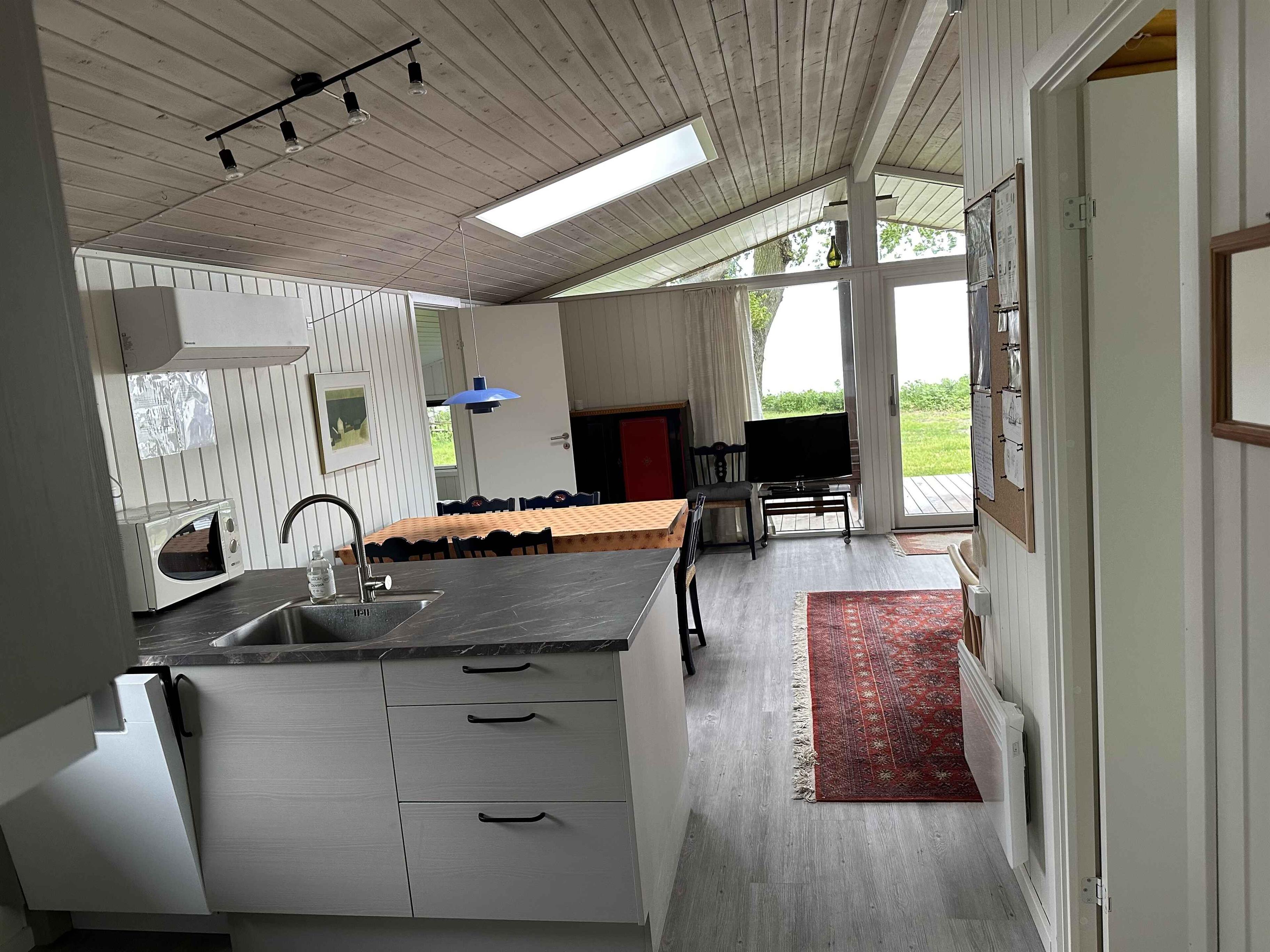 Nyrenoveret sommerhus i første række med panoramaudsigt over børnevenlig strand i Sønderjylland.
