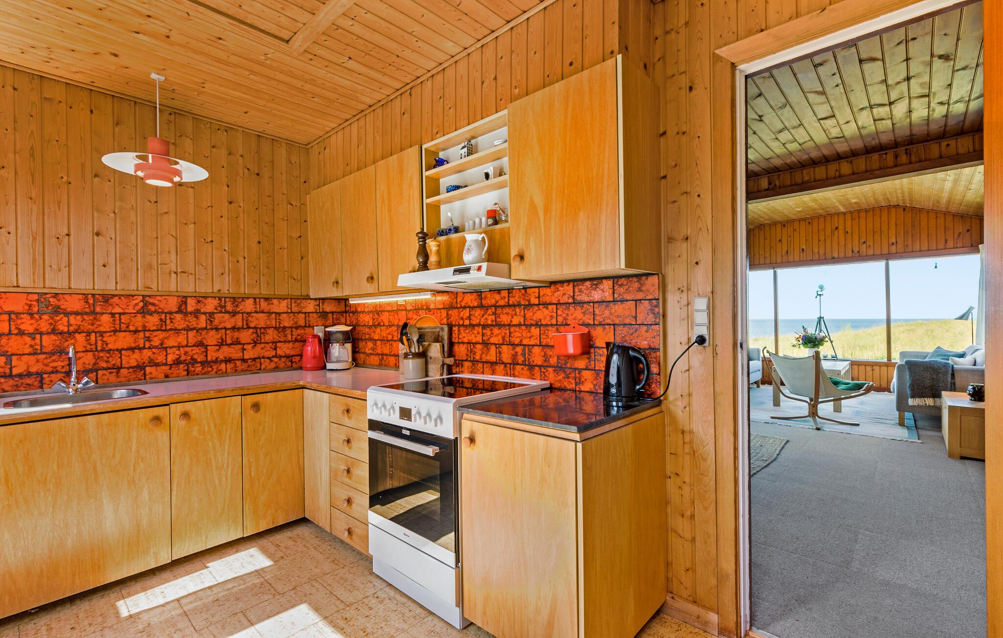 Nyd en unik ferie i dette charmerende træhus med retrostil og fantastisk udsigt over Kattegat ved Hald Strand.