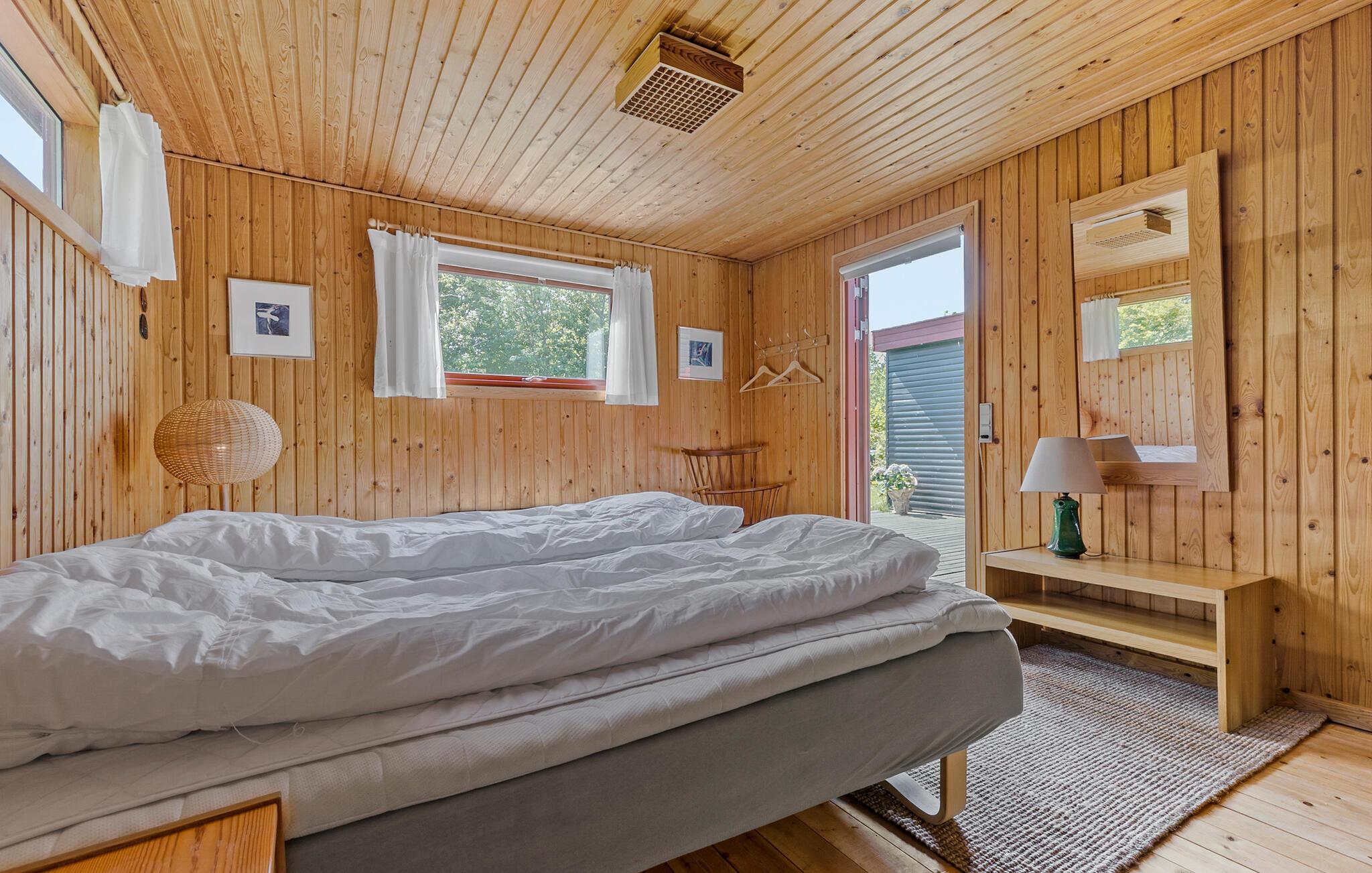 Glæd jer til jeres ferie i dette charmerende træhus, der med sin retrostil og de store vinduespartier skaber en behagelig atmosfære. Saml familien i stuen, spil brætspil, tilbered lækre snacks i køkkenet, og nyd udsigten gennem de store vinduer, hvor I kan se skibene sejle forbi i det fjerne.