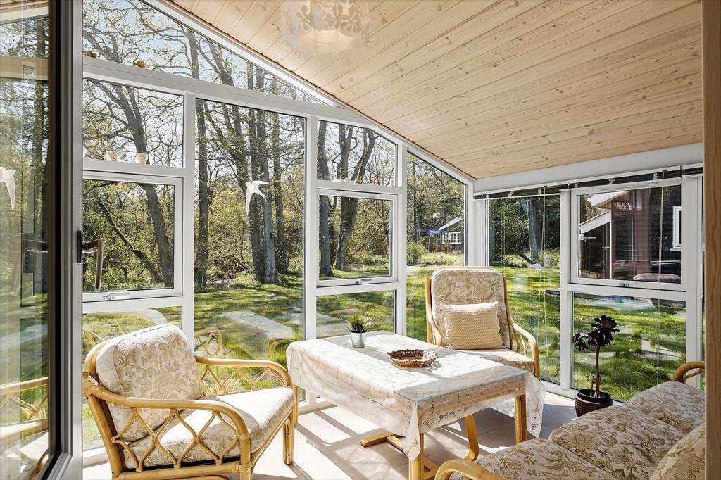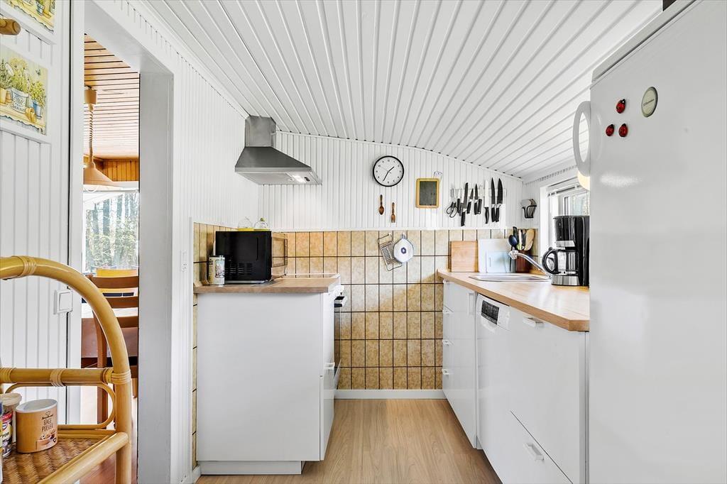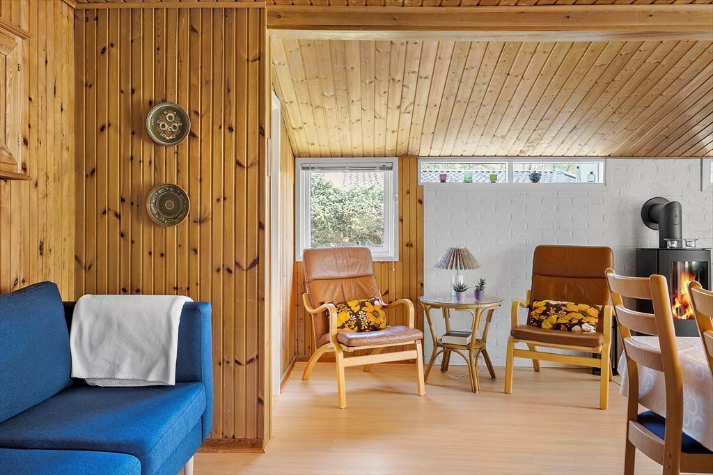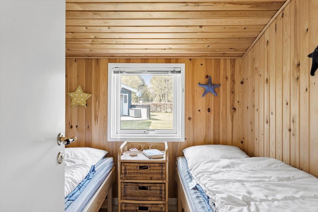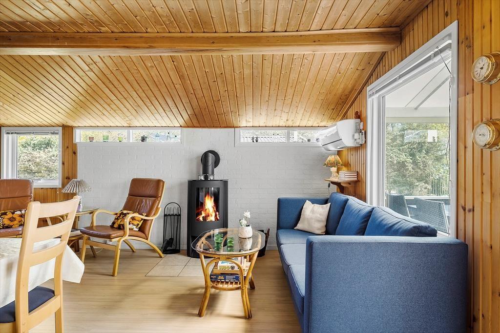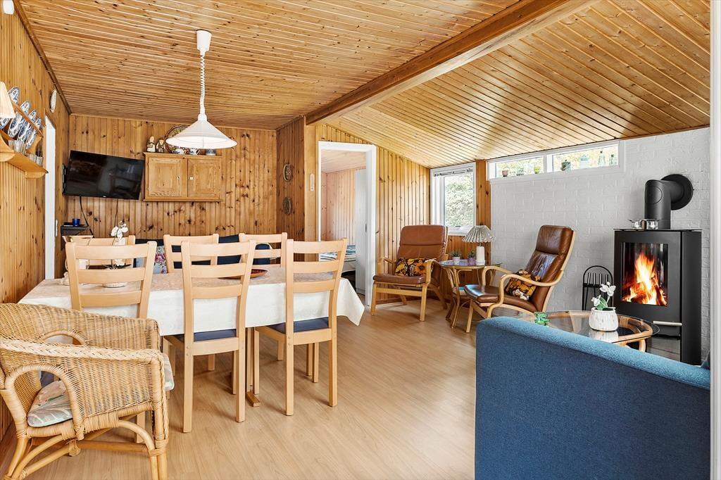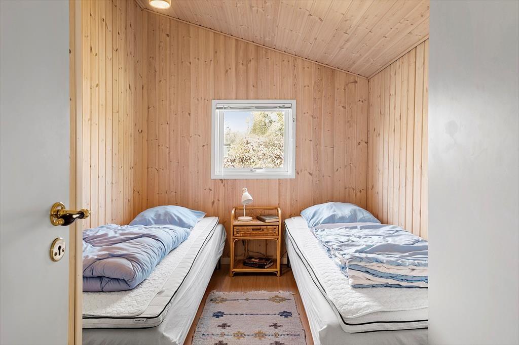 Sommerhuset har stået i disse naturskønne omgivelser lige siden 1949, og senest er det i 2020 blevet optimeret med diverse forbedringer. Blandt andet har I et dejligt, lyst badeværelse at tage brusebad i om morgenen, mens køkkenet giver jer en god og velfungerende ramme om madlavningen. I stuen får I klassisk sommerhusstemning for alle pengene, for her er der rustikke trælister på væggene og brændeovn, så det er det helt rette sted at slå sig ned for at spille ludo eller fordybe sig i en krimi. Alternativt kan I sætte jer i udestuen, hvor I får ekstra meget ud af sollyset og udsigten til grundens grønne træer. Husets to soveværelser er hver især udstyret med to enkeltsenge, og derudover har I adgang til et anneks, der er indrettet med eget toilet og et soveværelse med dobbeltseng.