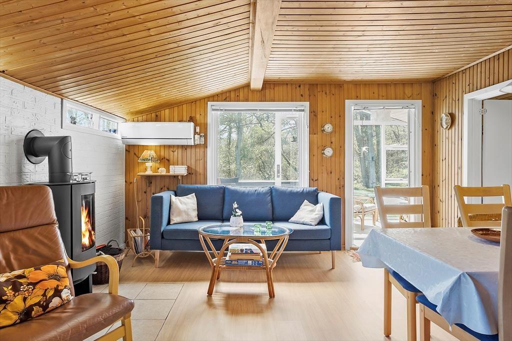 I er omgivet af smuk natur, når I holder ferie i dette hyggelige sommerhus på Kattegatvej 2. Vejnavnet er tegn på, at I bor tæt på vandet – mere præcist bare 350 meter fra stranden og Kattegat – og både Koldkær Skov og Trekantskoven er lige i nærheden, hvis I vil gå tur og lytte til fuglesang fra trætoppene.