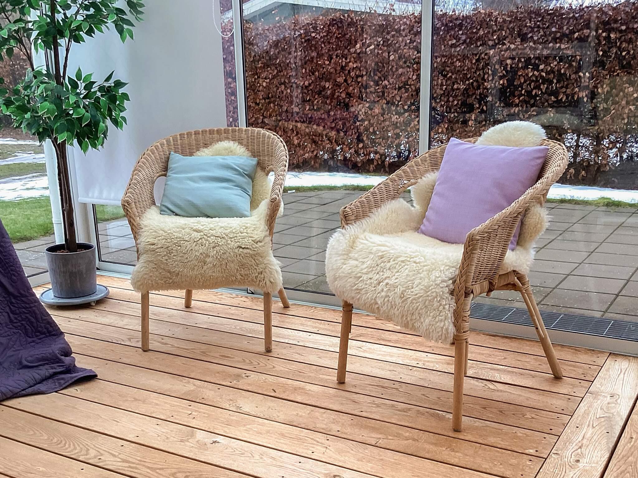 Fra stuen er der adgang til en 25 m² udestue med store skydedøre, der kan åbnes helt op og omdanne rummet til en indbydende terrasse på solrige dage.