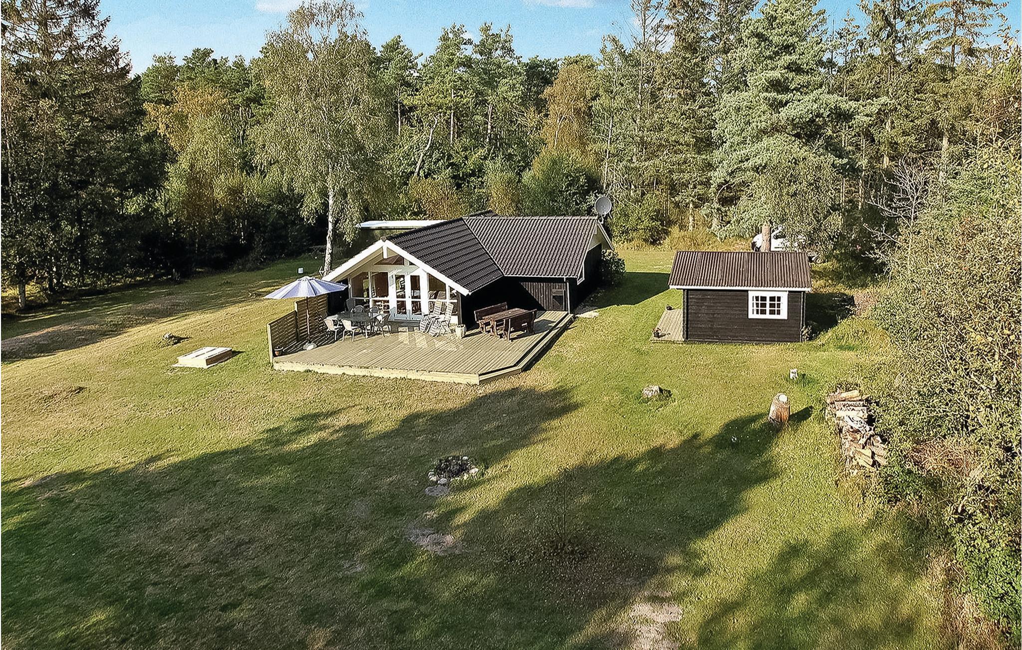 Huset er indrettet med gode, komfortable møbler og fremtræder lyst og meget indbydende. I selve hovedhuset findes to soveværelser samt et badeværelse, og i den tilhørende anneksbygning findes et hyggeligt opholdsrum, to sovepladser samt et badeværelse. Annekset opvarmes med egen varmepumpe. Den sydvendte terrasse inviterer til hyggelige grillaftener og masser af udeliv. Den store grund er perfekt til børnefamilien, hvor både store og små kan hygge sig med udendørsaktiviteter, leg og boldspil.