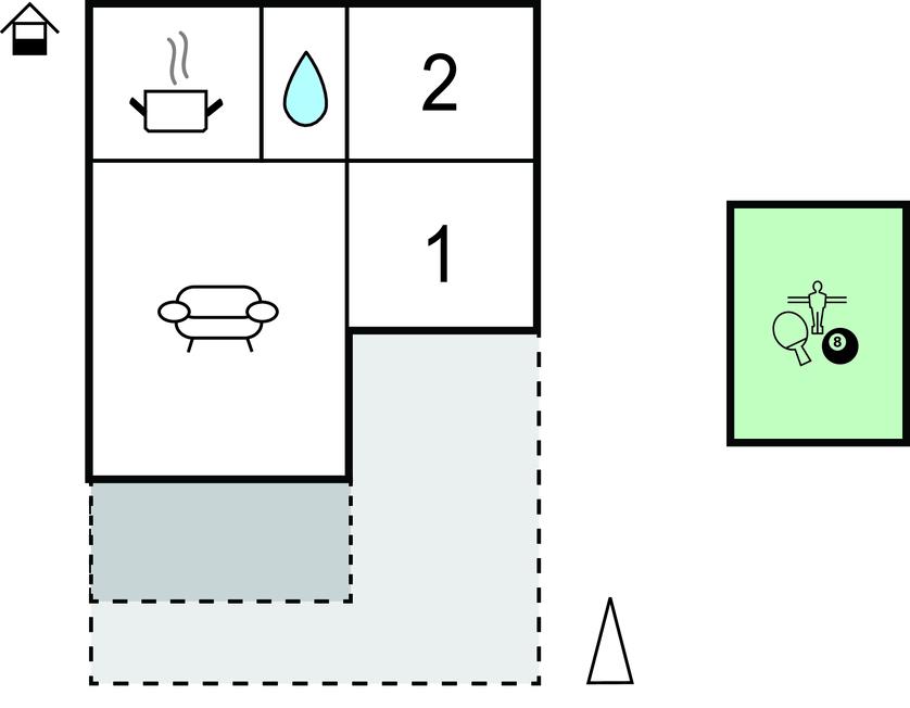Soveværelse 12m2 (nr. 1) - 2 Sovepladser. (Sofa, madras eller lignende).