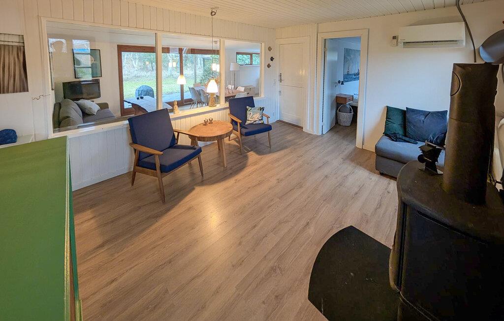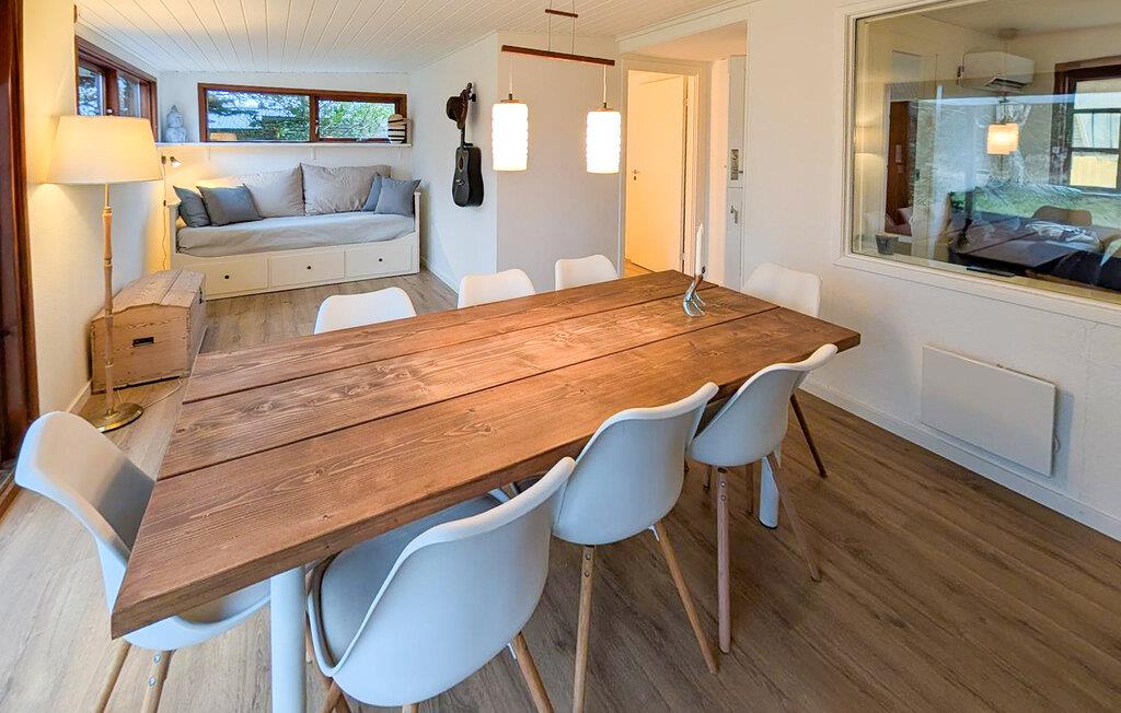 Velkommen til dette charmerende feriehus på en lukket sti i det idylliske klitområde i badeområdet Hou. Den hyggelige feriebolig består af et hovedhus og et anneks, hvor I finder soveværelser og fællesområder. I det lyse hovedhus bliver stuen det naturlige samlingspunkt for hele familien. Her kan I varme jer foran brændeovnen med timevis af brætspil på de køligere aftener.