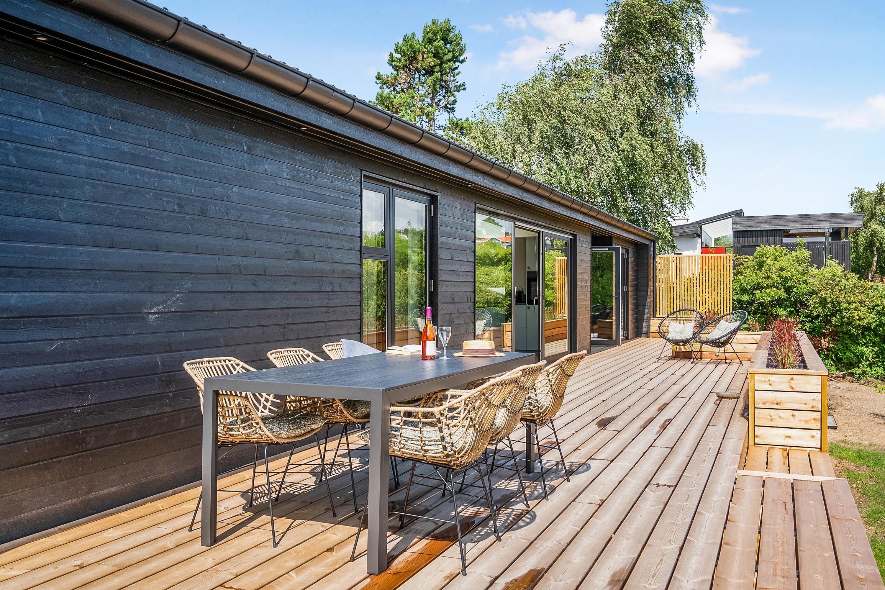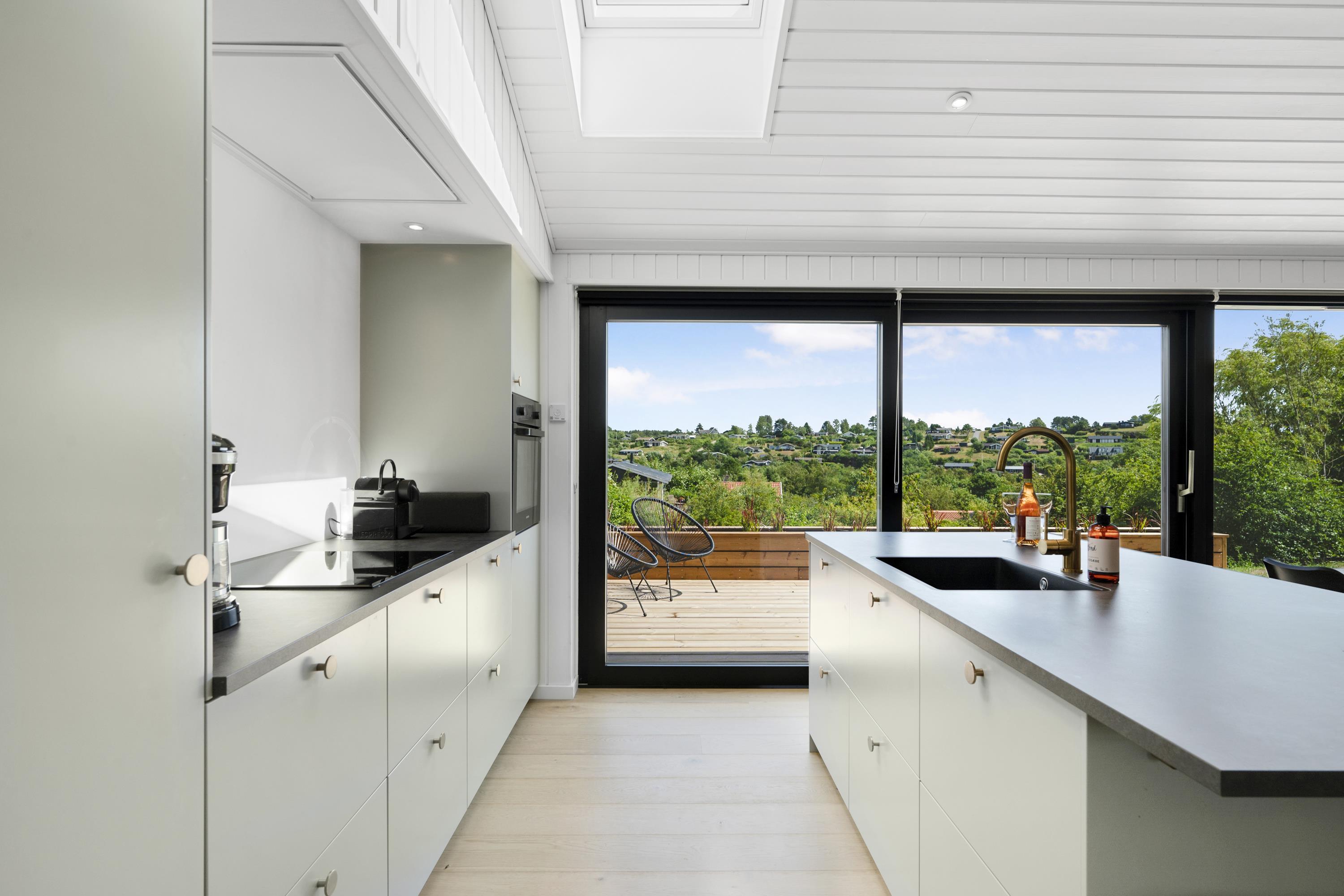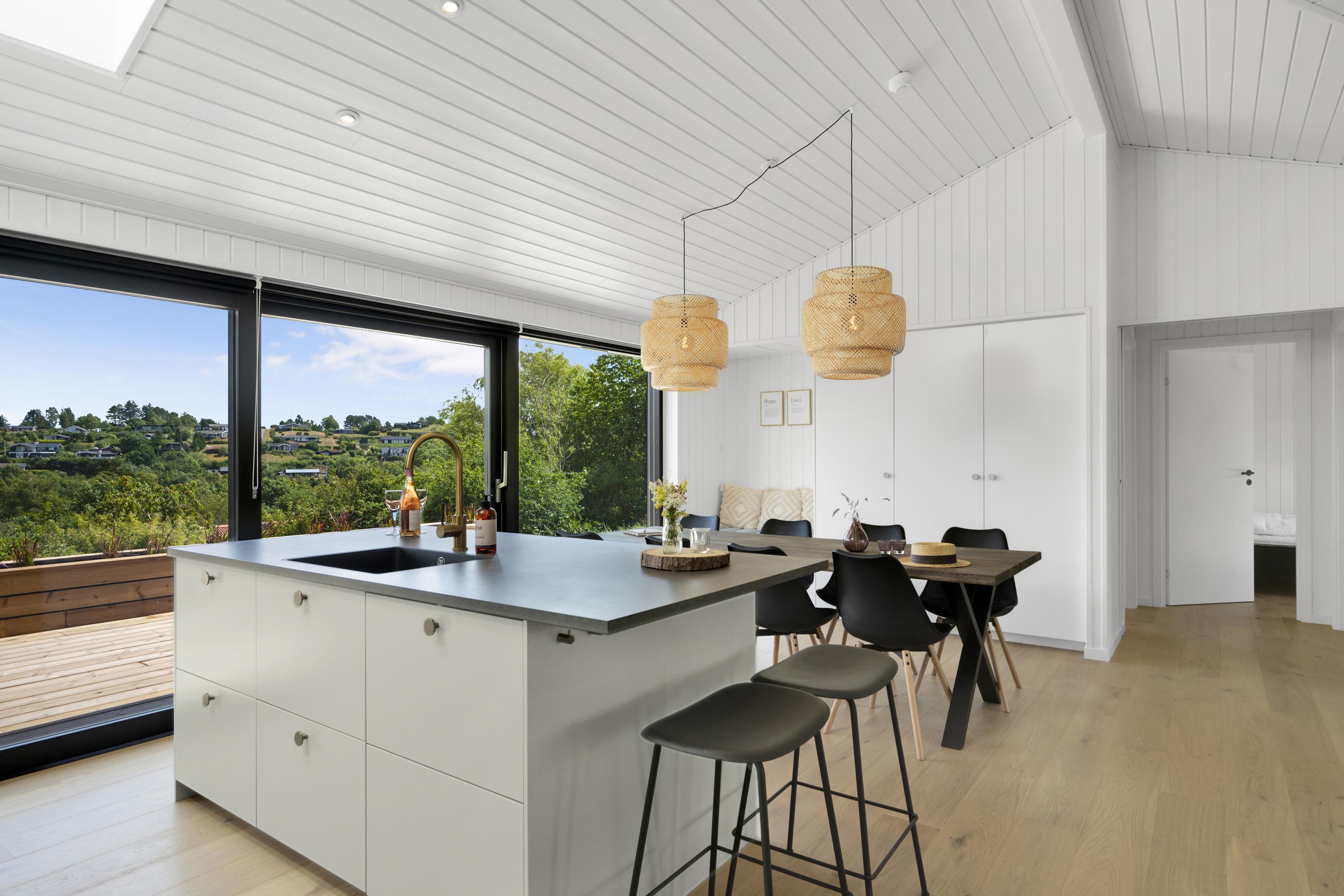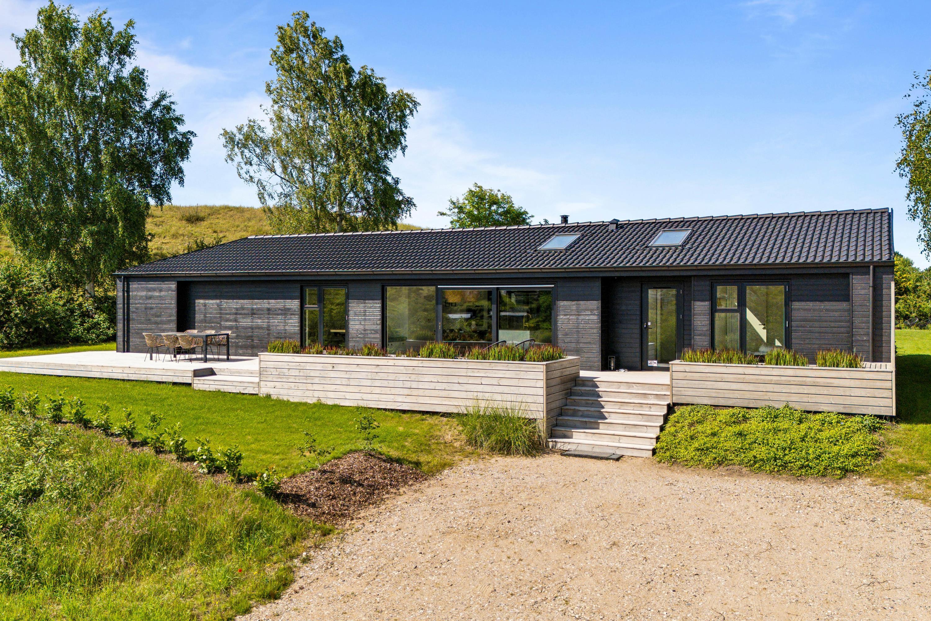 Moderne feriehus ved Handrup Strand med panoramaudsigt og børnevenligt multirum.