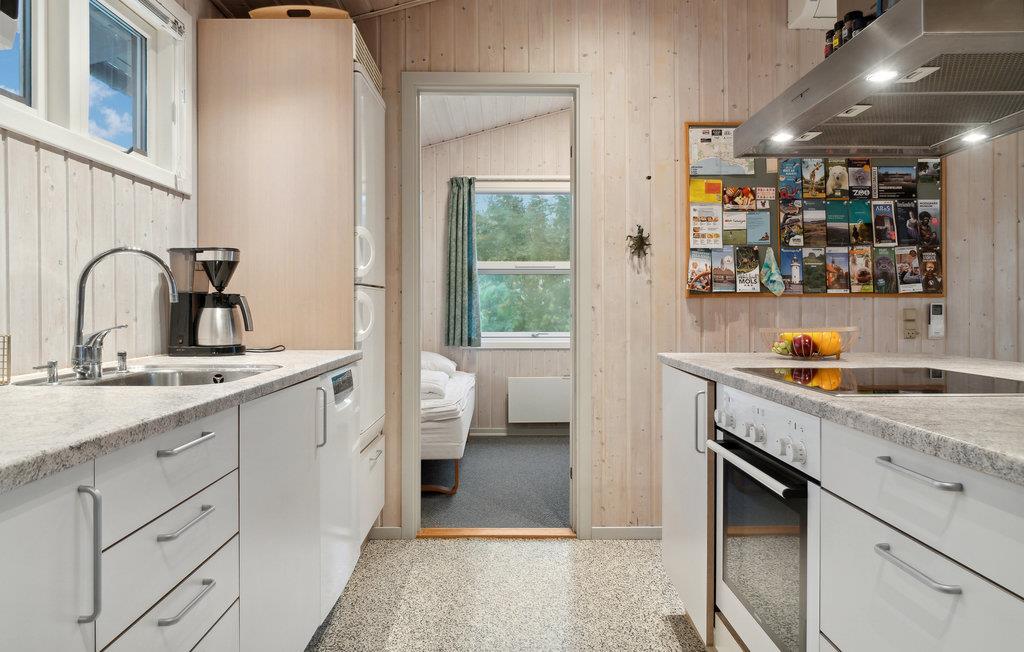 Dette hyggelige og rummelige sommerhus, byder jer velkommen i lyse og moderne rum, med alt hvad I skal bruge til en dejlig ferie. Køkken og spisestue er i et åbent rum, der lader jer nyde hinandens selskab mens feriens måltider tilberedes, herfra er der et par trin ned til opholdsstuen, hvor I vil få mange timer til at gå med spil og hygge.