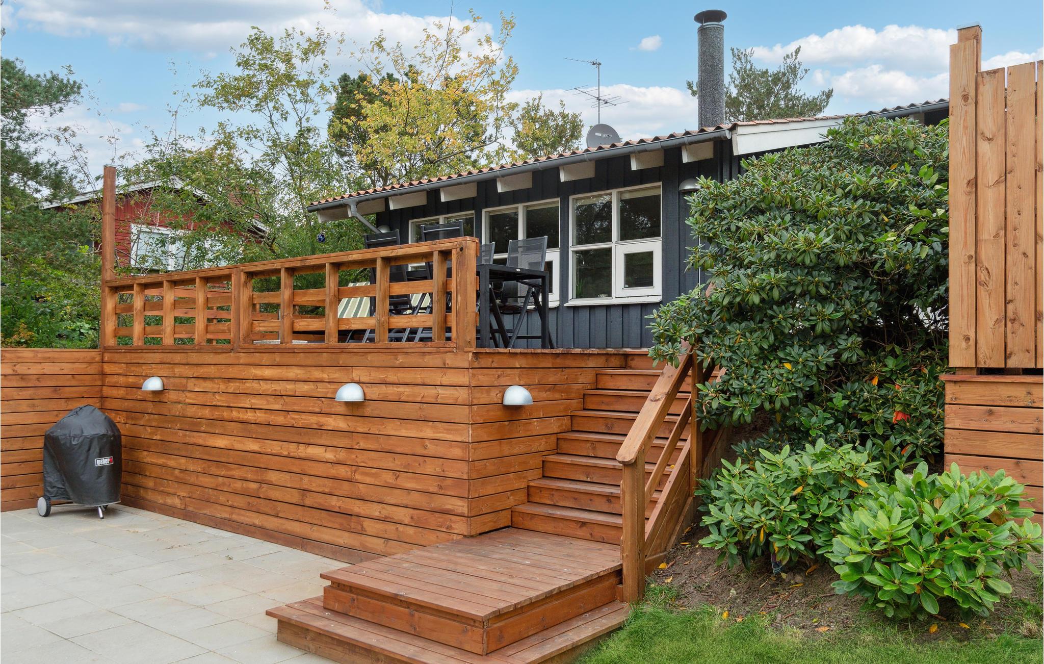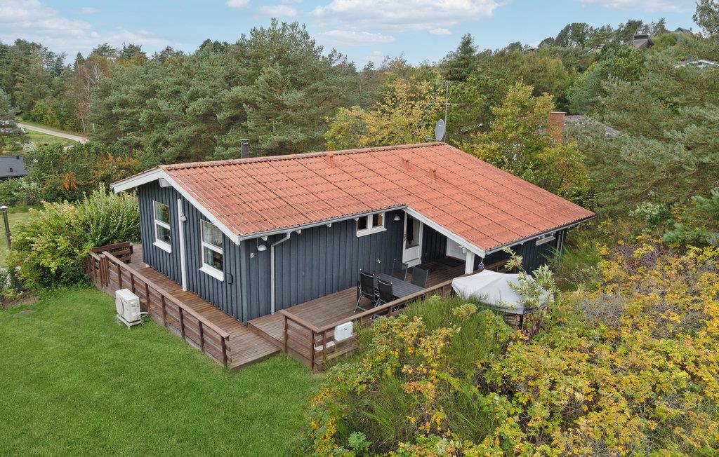 Rundt om huset strækker sig en træterrasse, der gør det let for jer at nyde feriens måltider udendørs, eller solbade på de varme dage. Her står havemøbler og grill til jeres rådighed.