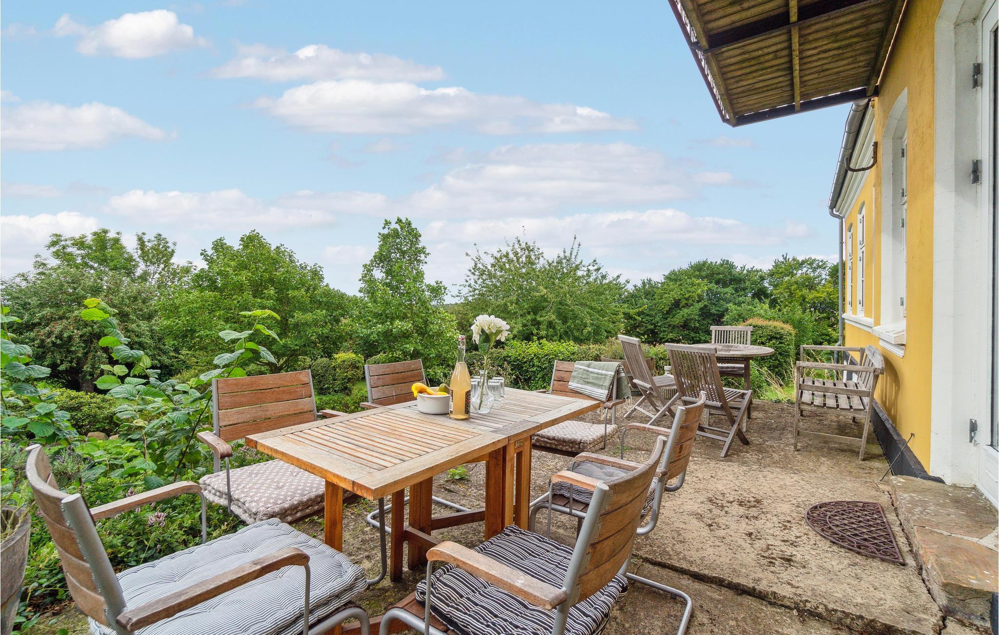 Dette indbydende feriehus er en oase for dem, der ønsker en fredelig og afslappende ferie med gode naturoplevelser. Huset har to etager. I stueetagen finder I en opholdsstue samt endnu en stue med TV og Apple-TV. Derudover er der et stort, åbent og veludstyret køkken med bl.a. brændeovn, et soveværelse med to enkeltsenge, et badeværelse med behagelig gulvvarme og badekar samt et bryggers med vaskemaskine. På 1. sal finder I tre store soveværelser og et gæstetoilet. Der er gratis trådløst internet i huset. Til huset hører en hyggelig have med frugttræer og to store terrasser med havemøbler og gasgrill, så I kan tilberede lækre feriemåltider og nyde de flotte solnedgange med et godt glas vin.