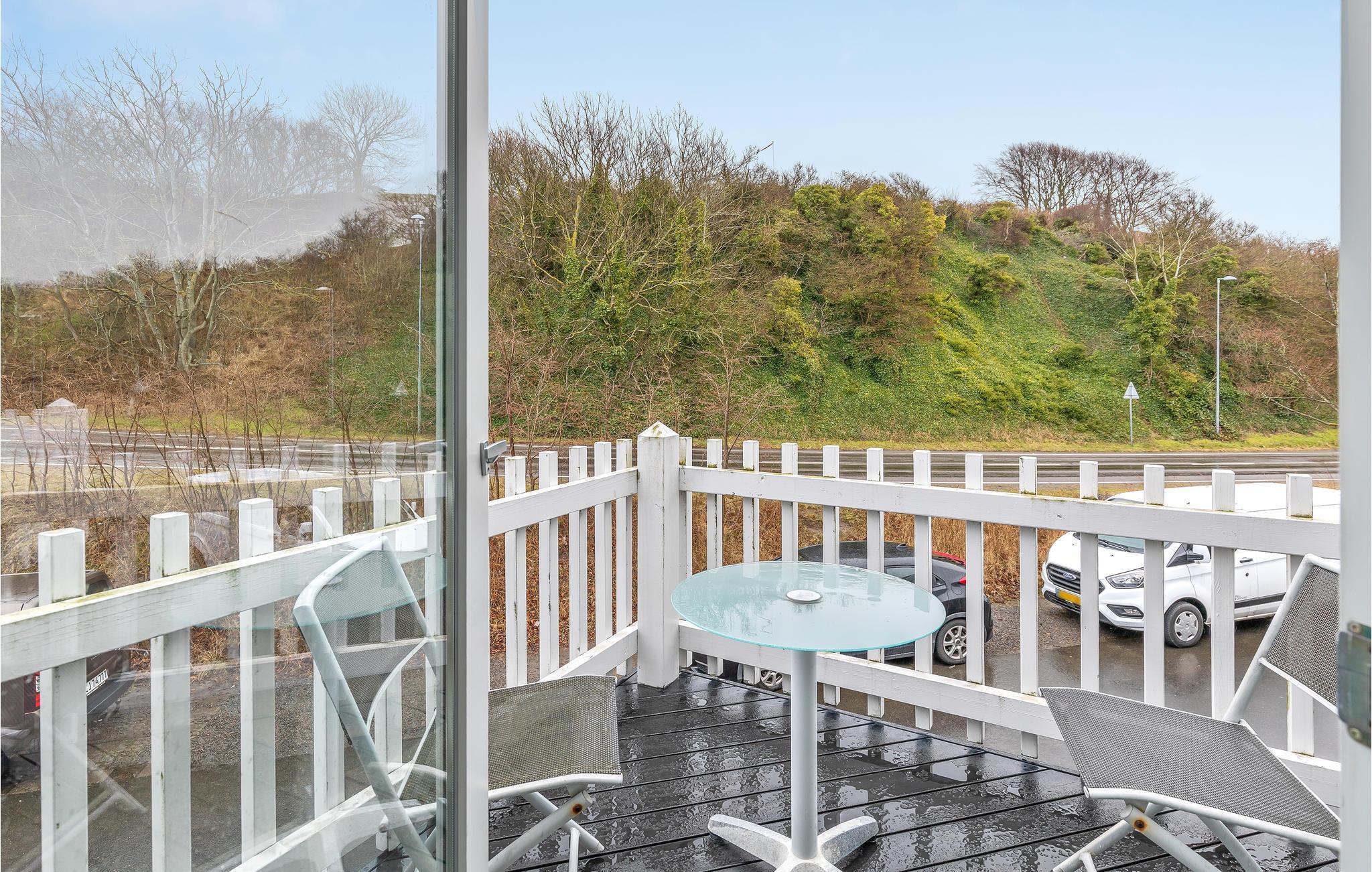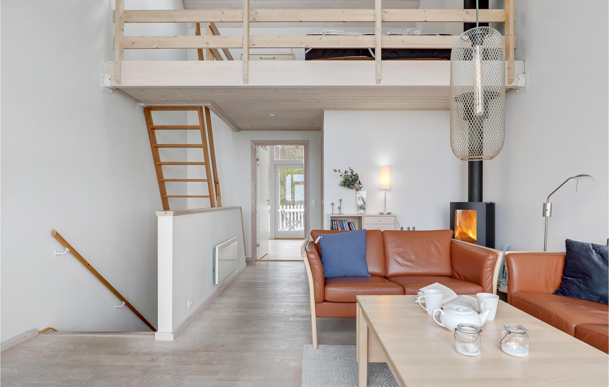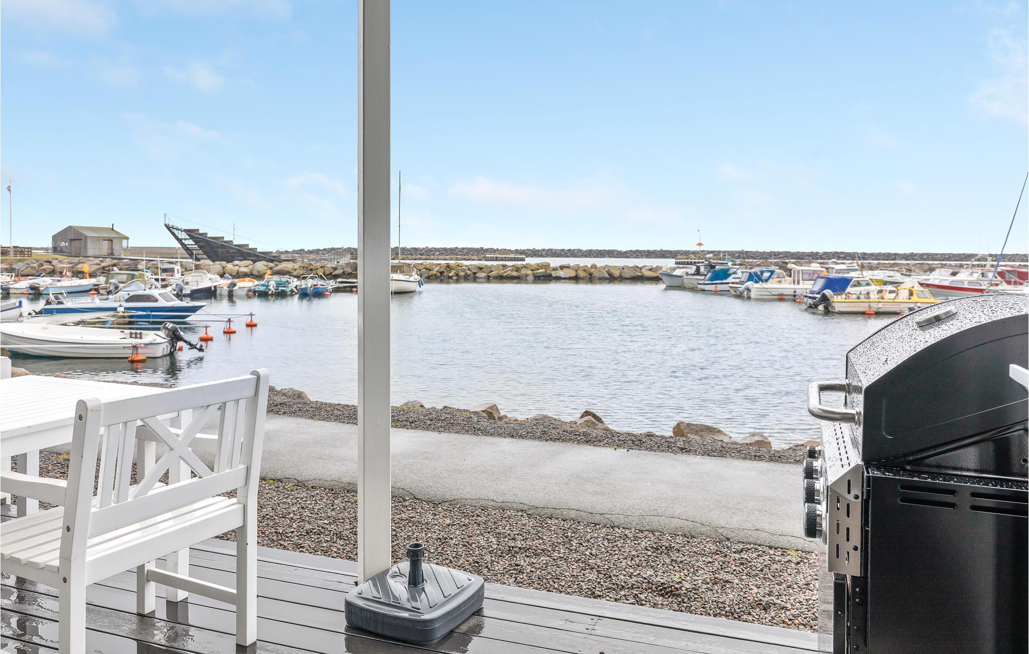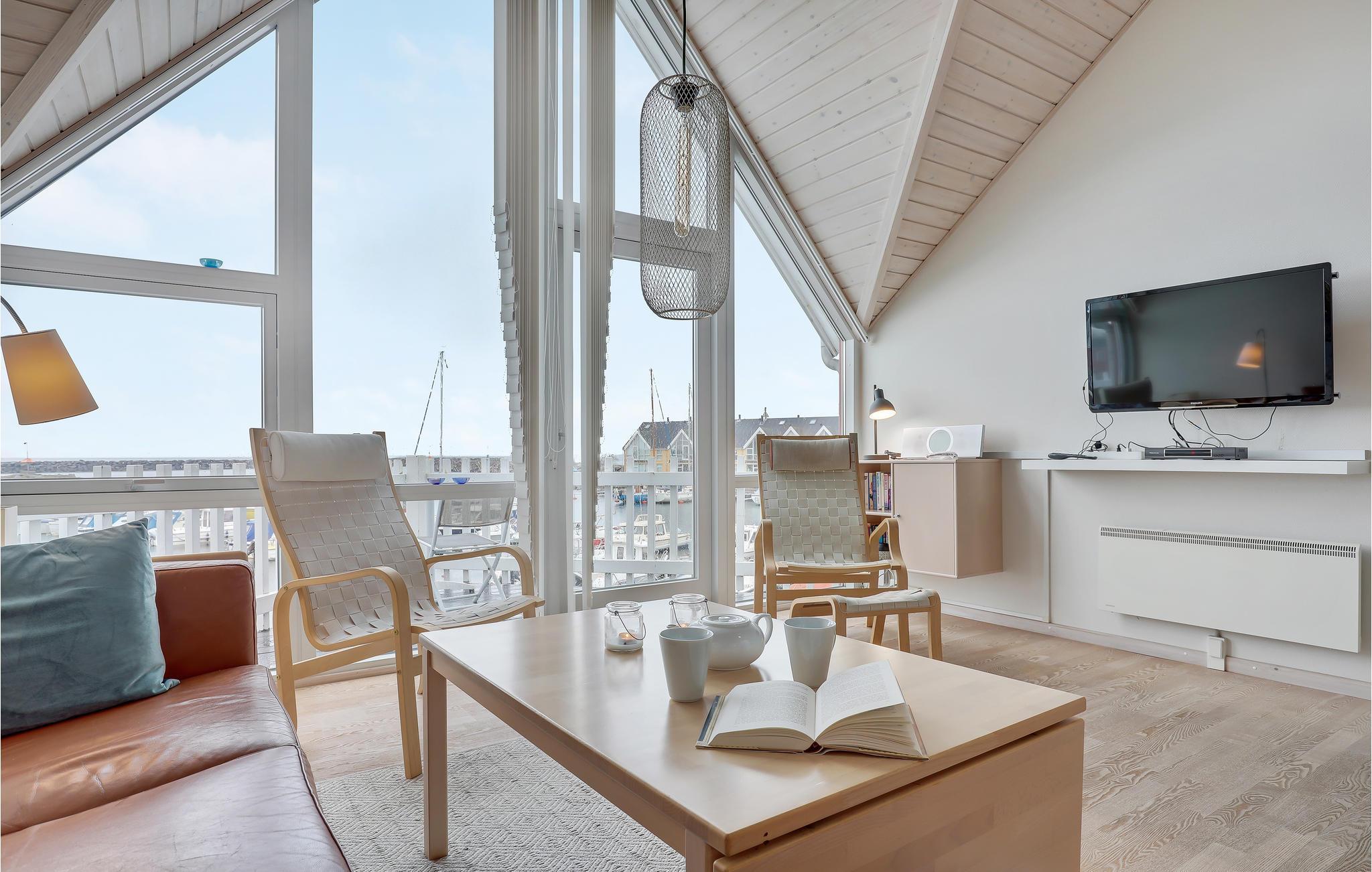 Lyst og kvalitetsfuldt feriehus med havudsigt ved Hasle Marina i et maritimt miljø.
