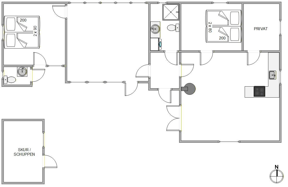 Med 2 soverum, der hver har 2 komfortable enkeltsenge, har sommerhuset plads til op til 4 personer. Feriehuset er ideelt indrettet, så I kan nyde både privatliv og fællesskab. Da op til 2 husdyr er tilladt, kan også jeres firbenede venner komme med på ferie. På den godt 2300 m² store klitgrund er der god plads til at børn og kæledyr kan gå på opdagelse.