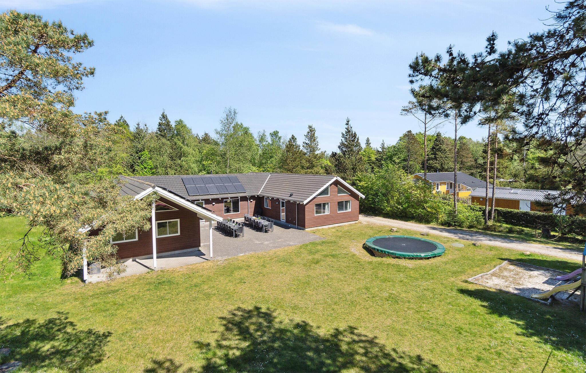 Fantastisk flot luksushus i et skønt naturområde, hvor den store familie eller vennepar rigtigt kan boltre sig. Huset specielle form som et H samt træerne på grunden, giver en masse gode lækroge på terrasserne rundt om huset, og tager samtidig den værste vind. Udover den store poolafdeling, er der et godt aktivitetsrum med mulighed for dyst i billard, bordtennis og bordfodbold. Det hele kan nydes med en drink fra den lille bar. Stort velfungerende køkken hvor der er tænkt på, at også dette skal være en leg, så her findes ekstra komfur, opvaskemaskine og køleskab. På hemsen kan børnene lege og se TV. For ivrige golfspillere ligger en golfbane tæt ved huset.
