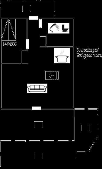 2 sovepladser i dobbeltseng. 4 sovepladser i enkeltsenge. Derudover er der 1 stk. barneseng.