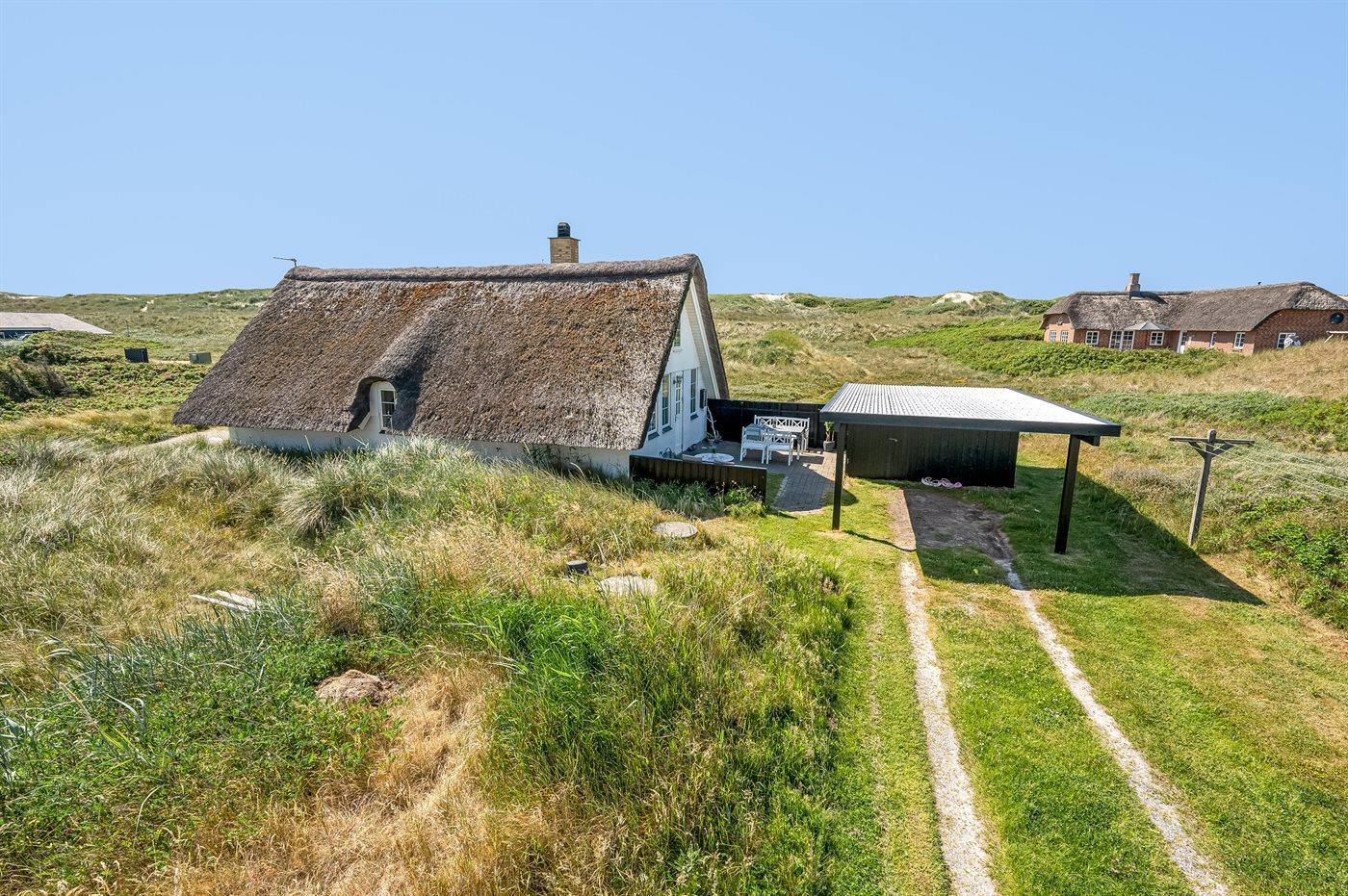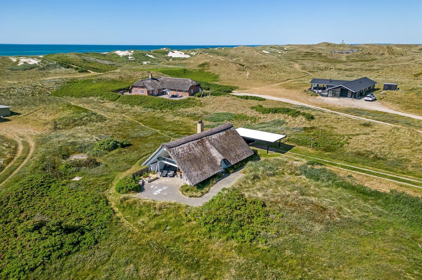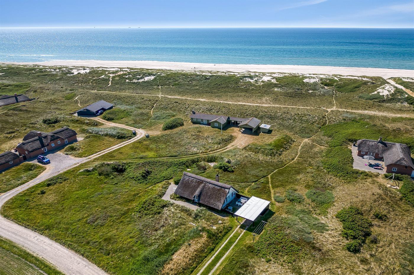 Ferieboligen er beliggende på en 2002 m² stor klitgrund. Der er 150 m til havet. Nærmeste forretning er beliggende i en afstand af 5000 m. Til ferieboligen hører 76 m² terrasseareal. Desuden er der 22 m² overdækket terrasse. Sandkasse. Der er carport til rådighed. Parkering ved ferieboligen.