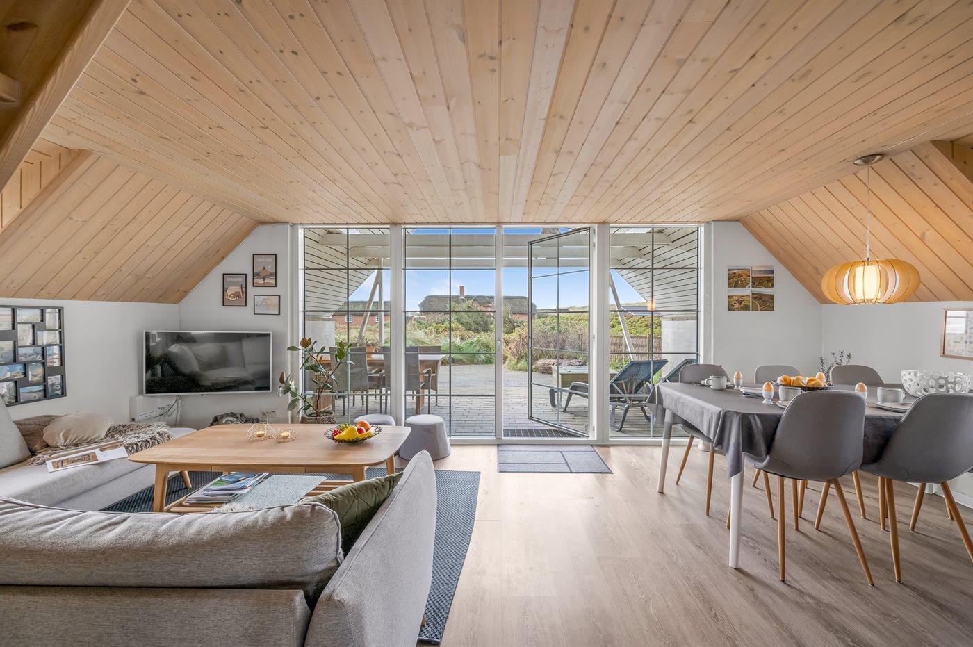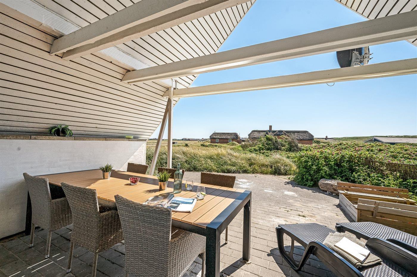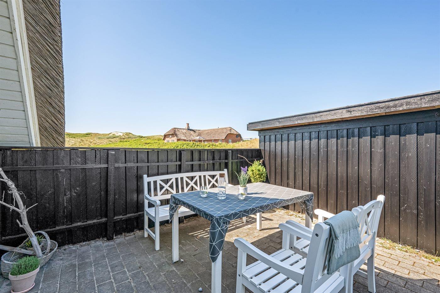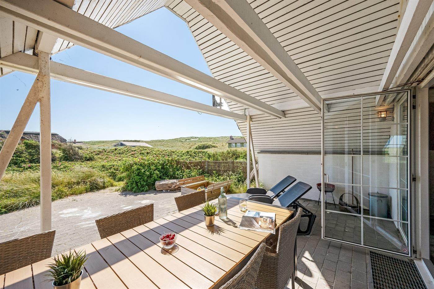 Ferieboligen er beliggende på en 2002 m² stor klitgrund. Der er 150 m til havet. Nærmeste forretning er beliggende i en afstand af 5000 m. Til ferieboligen hører 76 m² terrasseareal. Desuden er der 22 m² overdækket terrasse. Sandkasse. Der er carport til rådighed. Parkering ved ferieboligen.