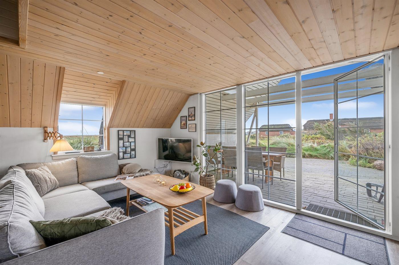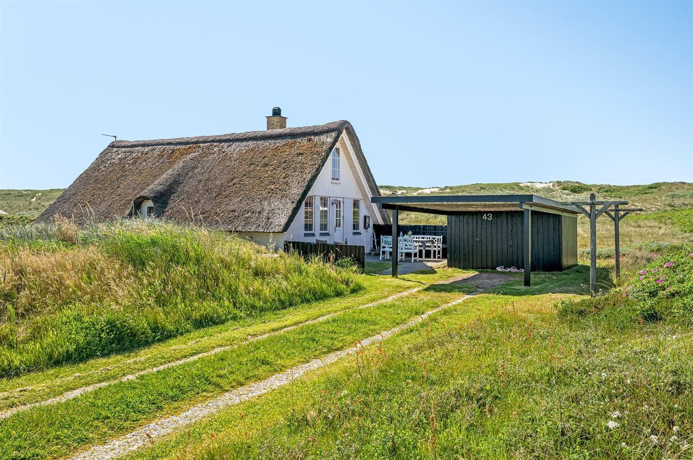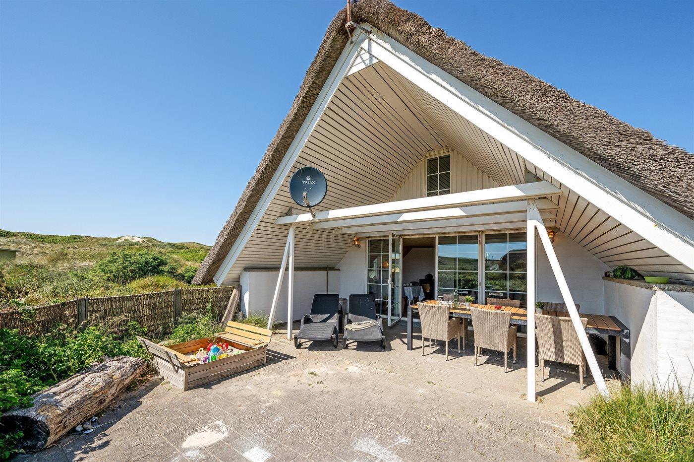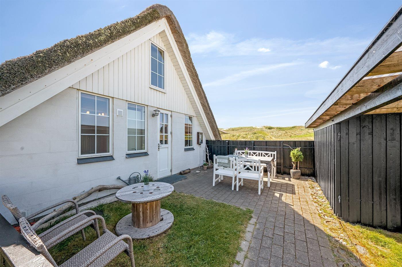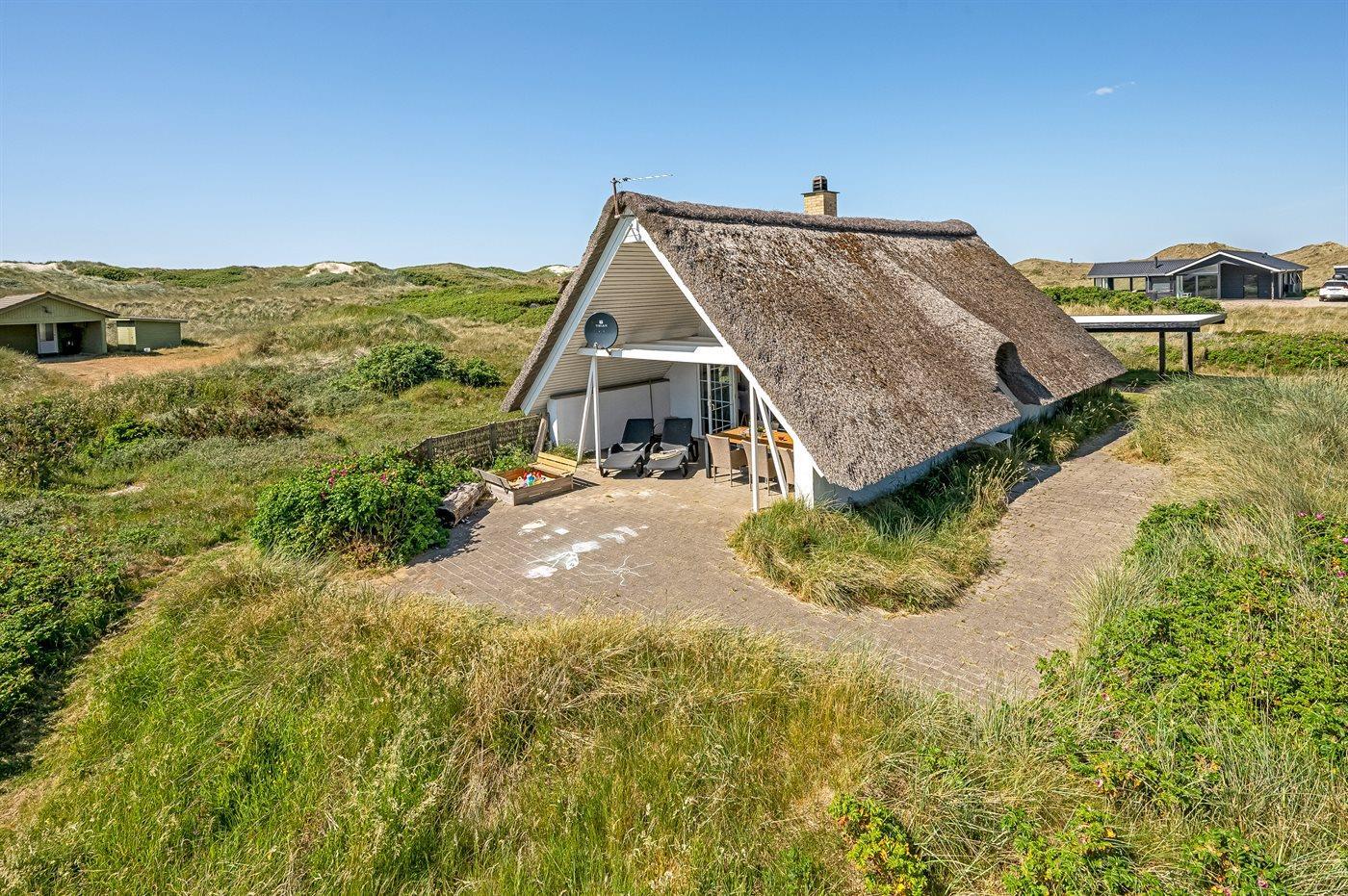 Dejligt, velholdt sommerhus med stråtag beliggende på en meget stor grund i naturskønt område tæt ved Vesterhavet og ca. 5 min. kørsel til badebyen Søndervig.