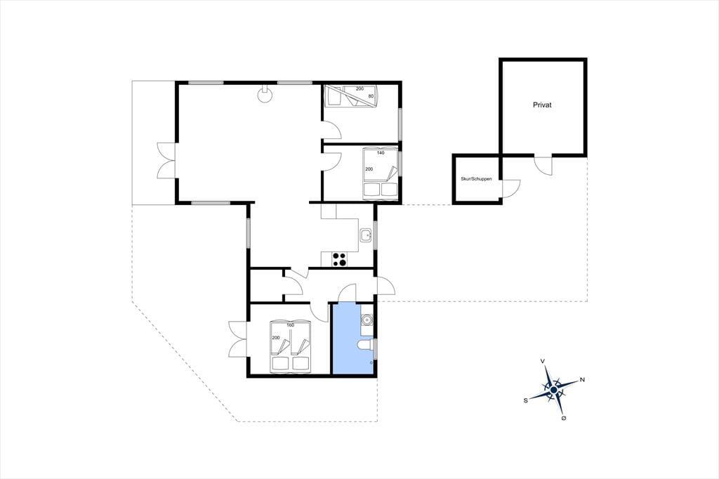 Sortebærdalen er en lille vej, der ender blindt, og sommerhuset ligger helt for enden i fredfyldte og ugenerede omgivelser. En lille sti fører jer direkte gennem klitlandskabet og ned mod Vesterhavet – for at komme ned på stranden skal I kun tilbagelægge 400 meter, så flere daglige badeture kan sagtens komme på tale. Skal hele ferien ikke foregå her på den dejlige sandstrand, er der få kilometer til både Stadil Fjord og Ringkøbing Fjord, og den hyggelige badeby Søndervig ligger bare tre kilometer væk. Her kan I klare indkøbene og gå ud at spise, og hvis I har medbragt cykler, er der cykelsti hele vejen derhen.