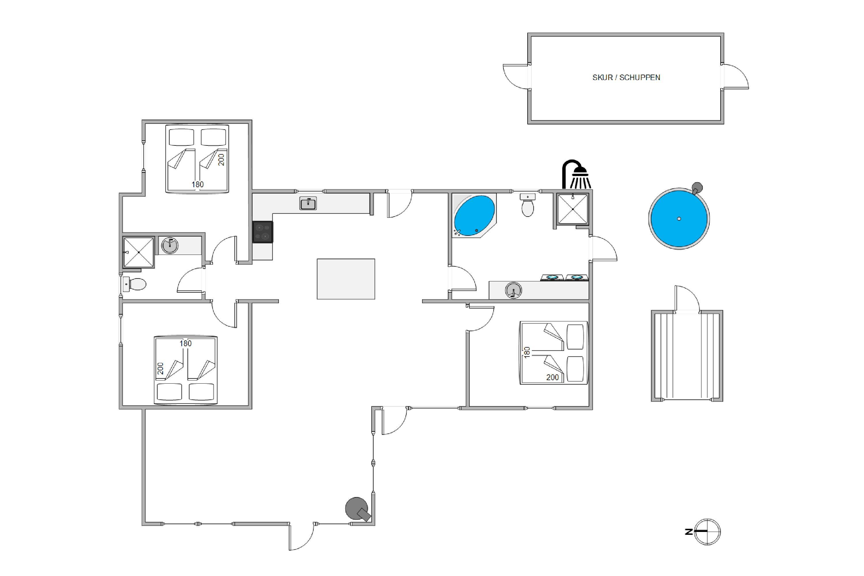 Der er 2 badeværelser med gulvvarme, så I undgår kolde fødder i vinterhalvåret. Der er 3 hyggelige og rummelige soveværelser, hvor I kan trække jer tilbage og lade batterierne op. Faciliteter som vaskemaskine og tørretumbler gør opholdet endnu mere behageligt, så I ikke skal tænke på beskidt tøj.