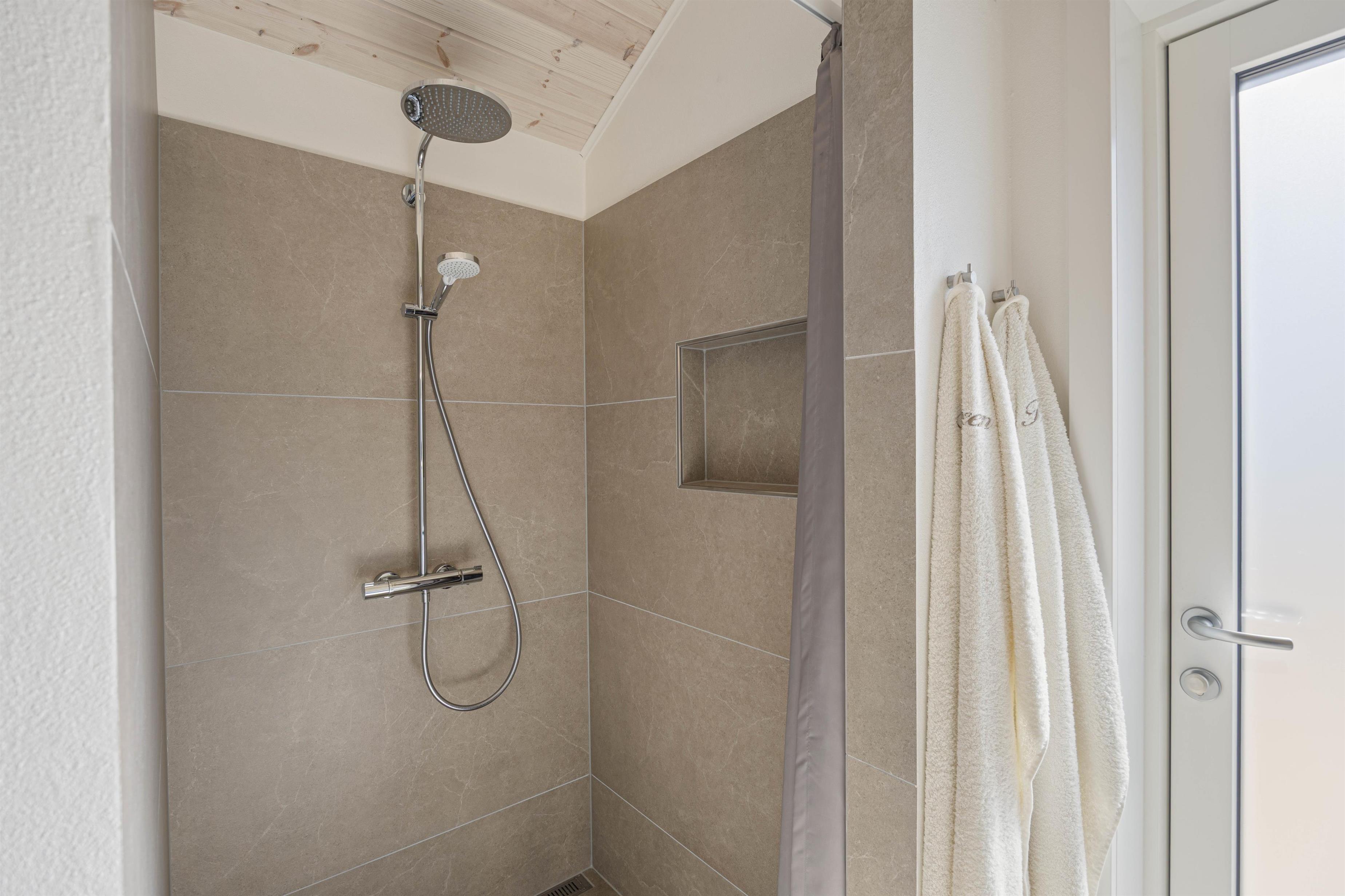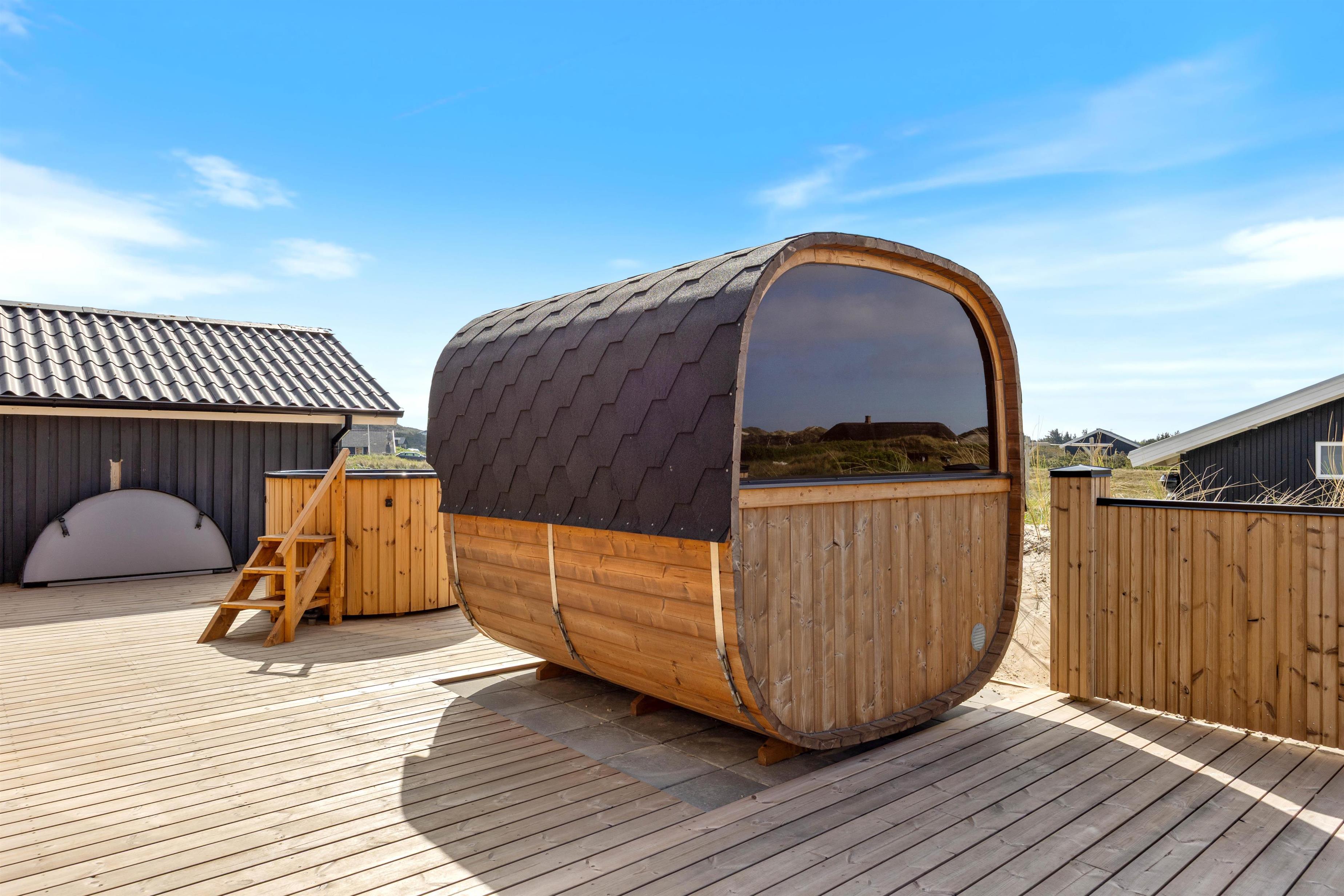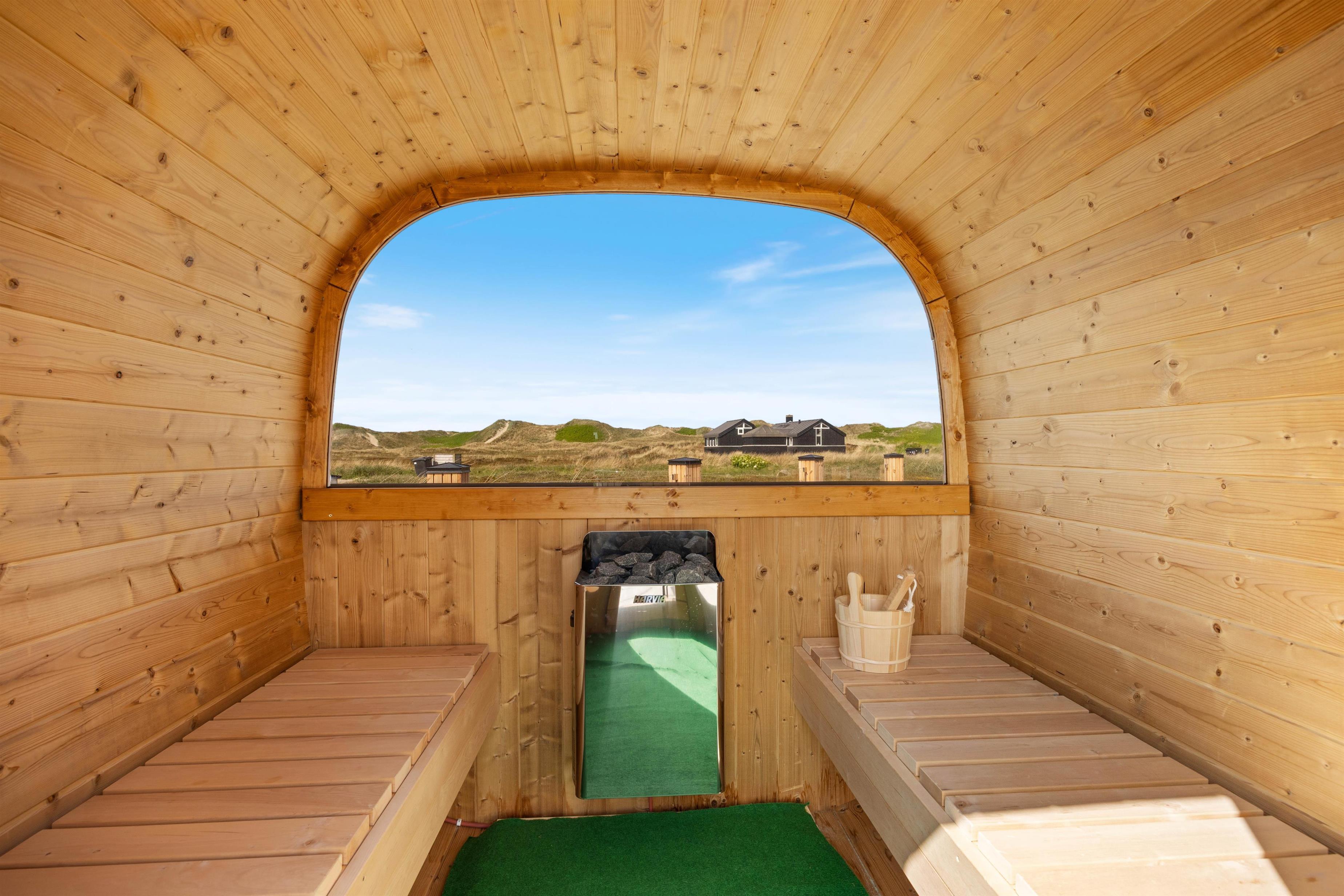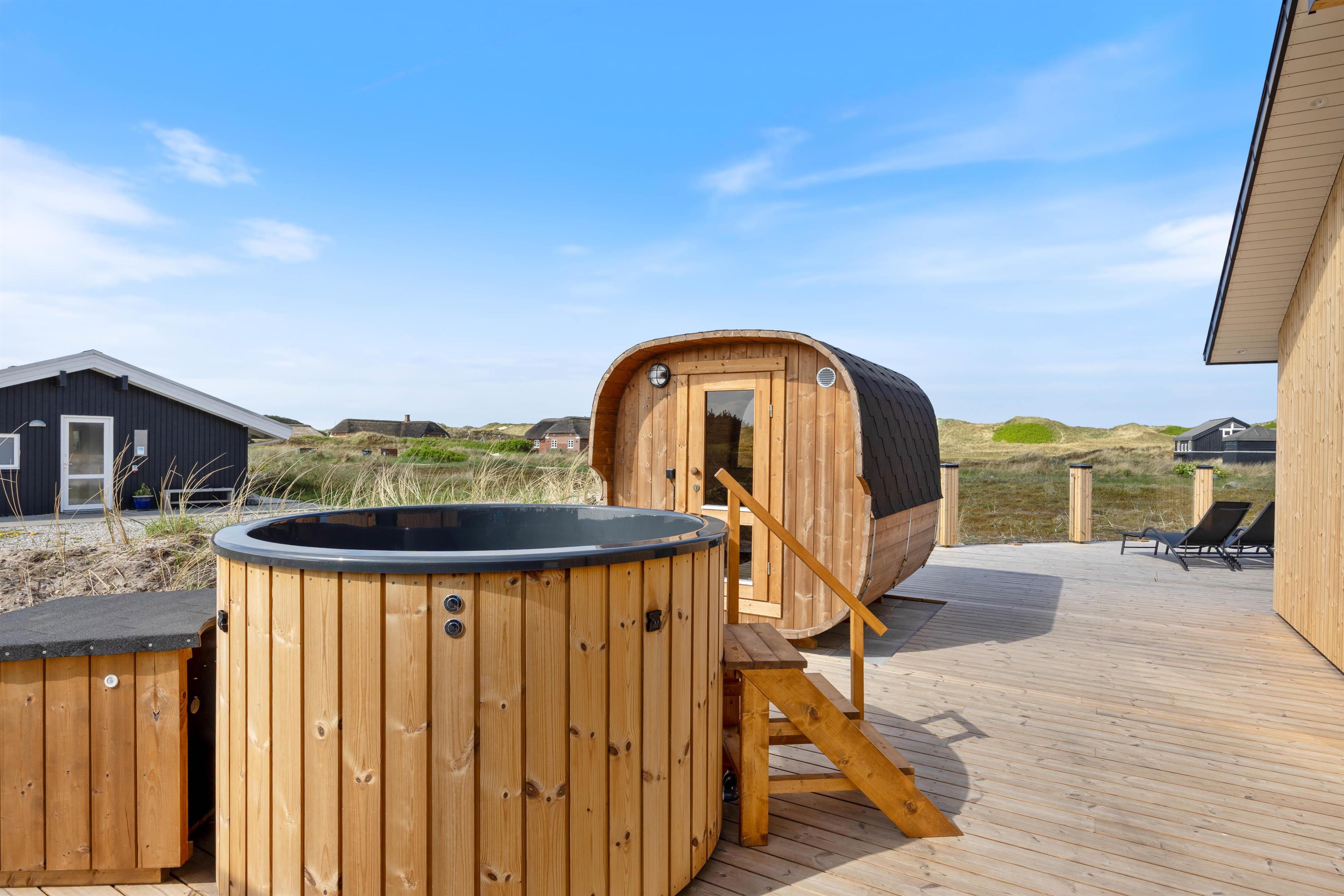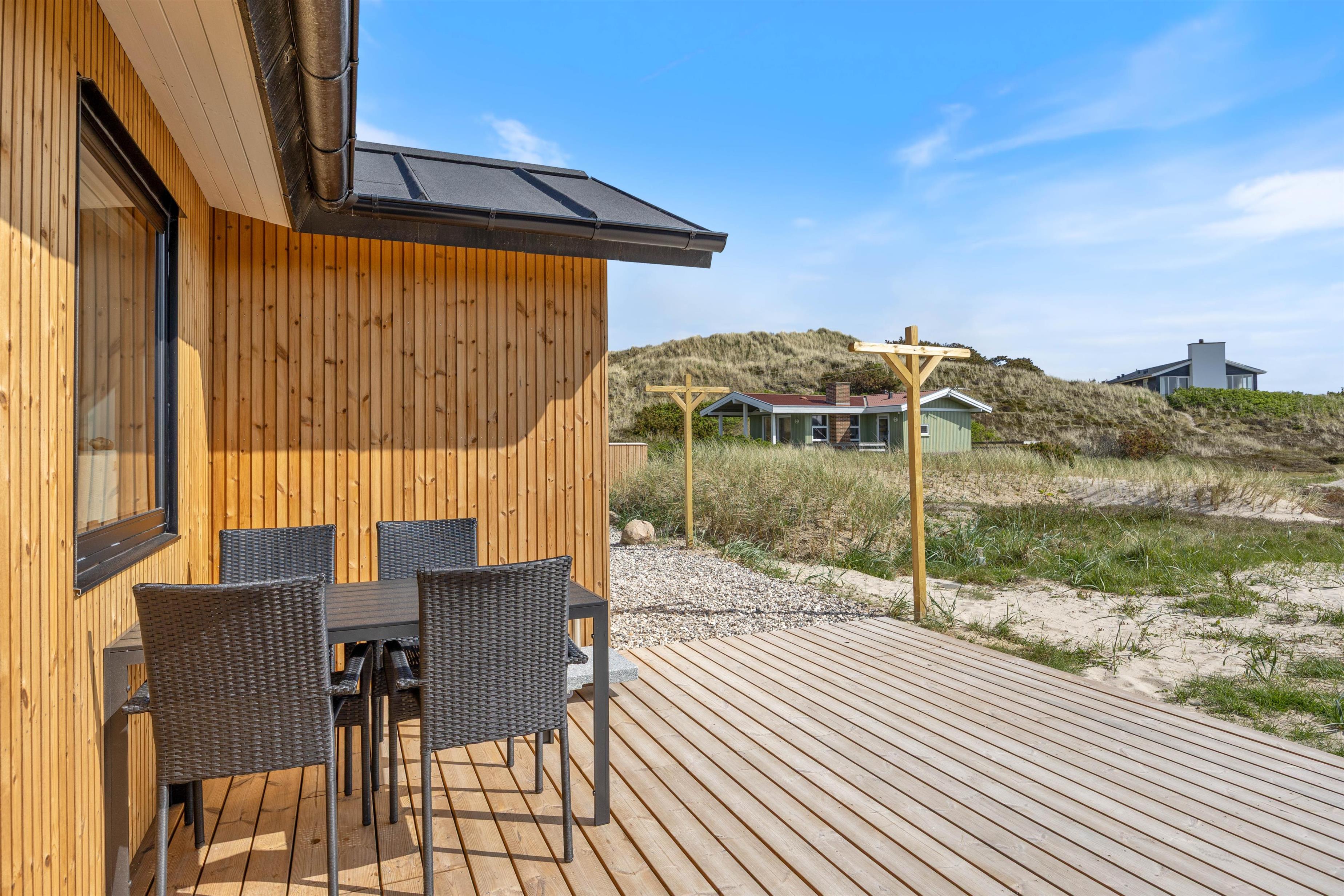 Takket være den korte afstand på ca. 360 meter til stranden kan I til enhver tid nyde Vestkystens betagende og kilometer lange sandstrand og udforske de vidunderlige omgivelser. Efter en forfriskende dukkert i havet kan I benytte jer af den udendørs bruser i haven, som er tilgængelig fra april til november.