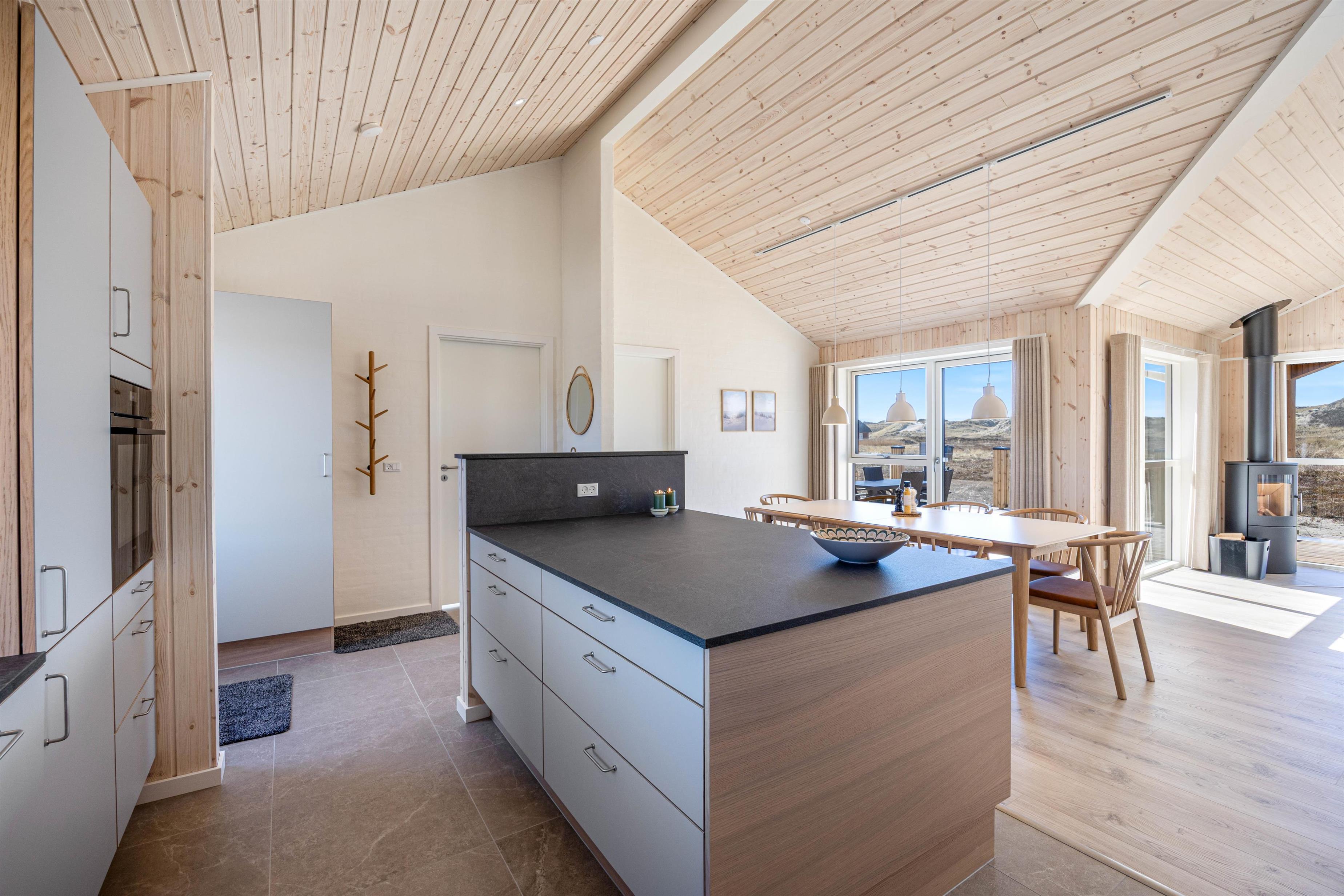 Feriehuset kan rumme op til 6 personer og jeres 2 hunde, hvilket gør det ideelt til familier eller vennegrupper. Det fuldt udstyrede køkken er et godt sted for familiens kok. Der er også en opvaskemaskine, så I slipper for at vaske op. Nyd aftenen ved den knitrende brændeovn, som skaber en hyggelig atmosfære, eller saml jer omkring spisebordet for en spændende spilleaften, med hyggen i centrum.